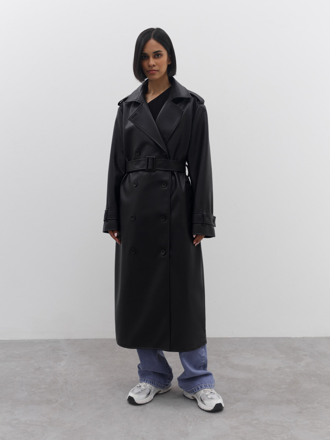 Давайте разберемся с вашей нездоровой привязанностью к плащу. Если вы так истово полюбили его за крой и силуэт, то просто поменяйте материал, откажитесь от бежевого хлопка или того хуже – полиэстера. Одна из актуальных альтернатив – черный тренч из (эко)кожи. Еще недавно при виде такого плаща все хором вспоминали Нео и прочий кибер-шик. В новой реальности черные кожаные плащи отвечают за Кардашьян-шик. Дизайнеры предлагают выбирать длину макси, обуваться в сапоги и не стесняться декора на грани фольклора: громадной филигранной пряжки как у Acne Studios, бабушкиного кроше в тон как у Gabriela Hearst или лаковой поверхности, как у Alaia, которая так и напрашивается на палехскую роспись.