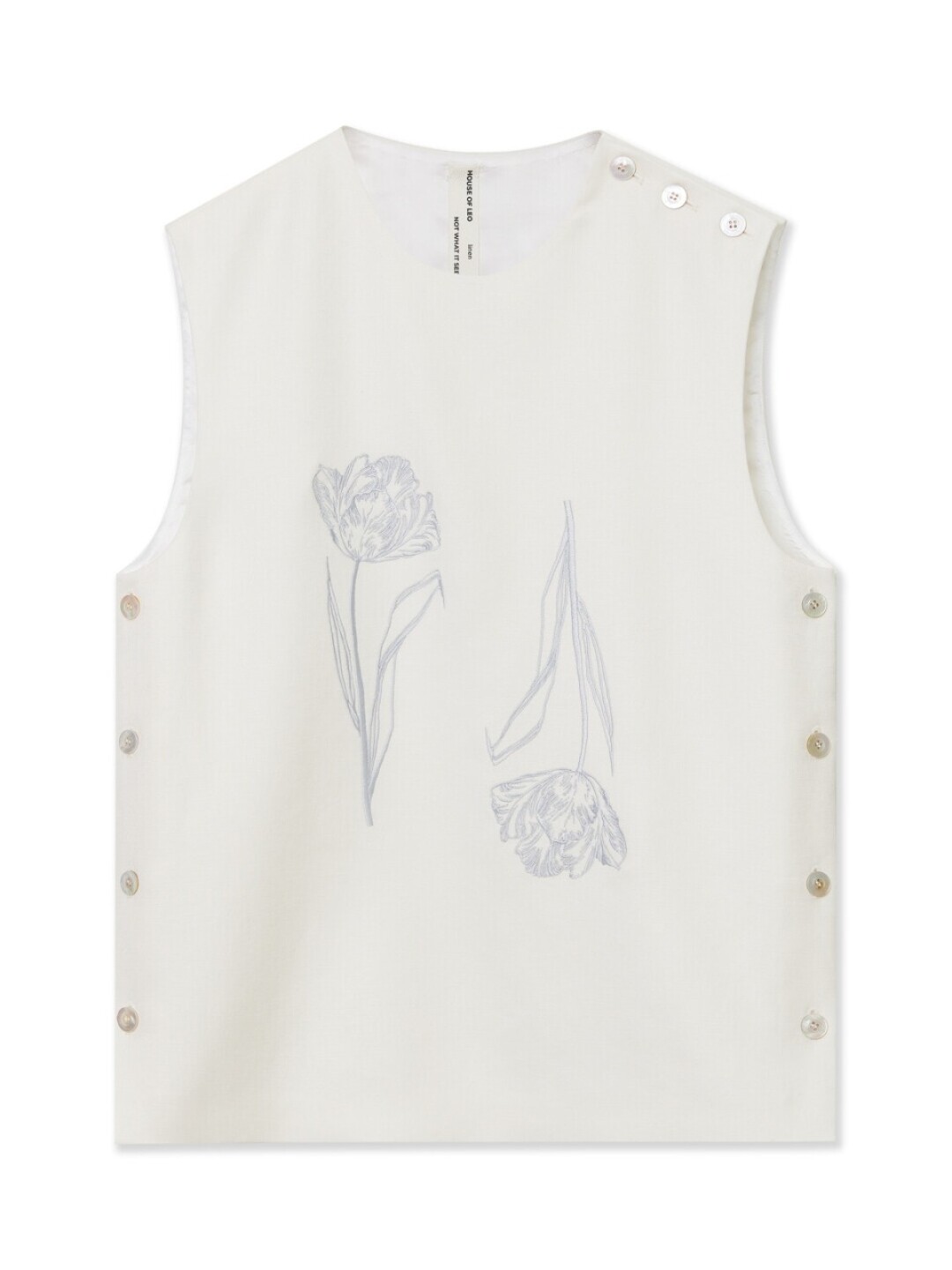 Лен — лучший друг масиков, чечиков и даже штрихов (последних легко вычислить по черной-черной рубашке Loewe), а золотистые ретриверы замечены в любви к вышитым тюльпанам House of Leo (не путать с нарциссами). Тем временем команда Andersson Bell ударилась в гжельскую вышивку ромашек и незабудок, мастера шик-стритвира Rhude увлеклись таитянскими пасторалями, а итальянские тяжеловесы Brioni поймали на нюдовой тенниске тень от пальмовой ветви (субтропическое бессознательное!).