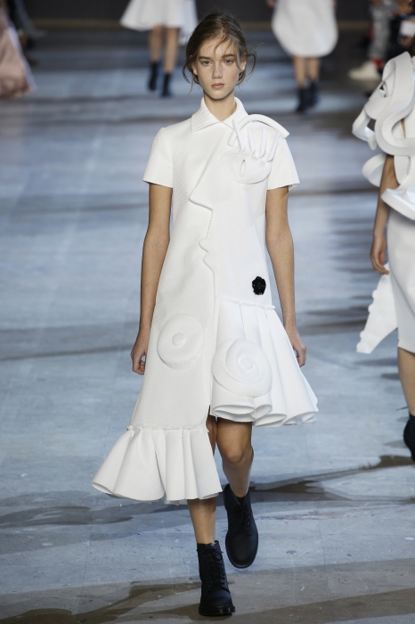 Почти в каждом из двадцати луков коллекции можно было легко угадать работы Пабло Пикассо. А вот разглядеть в образах рубашку-поло — сложнее, несмотря на то, что именно ей посвятили коллекцию Хостинг и Снорен. Напомним, в прошлом году Viktor & Rolf объявили о намерении прекратить выпуск коллекций ready-to-wear и сосредоточиться только на кутюрной линии. Шоу открылось платьем-сорочкой, которое начало усложняться с каждом луком, а к концу показа превратилось в гигантскую башню на голове у модели. Арт-критики увидели в коллекции отсылки к коллажам Жоржа Брака, работам Анри Матисса и портретам Доры Маар, подруги Пабло Пикассо. Все топы и платья сделаны из классической ткани для рубашек-поло — пике. Ее усложнили, сделали более рифленой, плотной, а фигурные вставки на нарядах вырезали лазером и покрыли сеткой. Показ прошел под радиохедовский Сreep в исполнении бельгийского хора девочек.