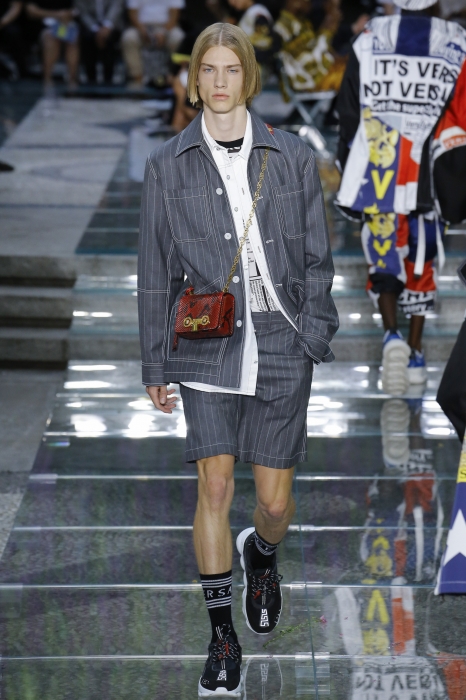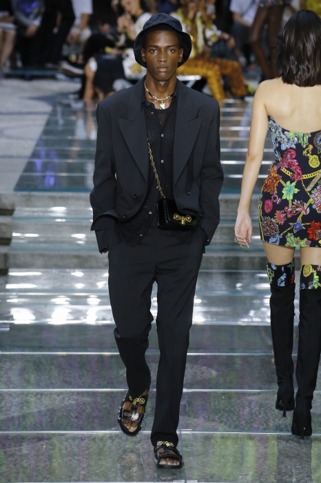 Тем, кому пока сложно решиться на радикальные луки, Versace предлагает итальянскую классику: тотал-блэк смокинги вместе с панамкой, голубые джинсы с удлиненным пиджаком, трикотажные топы со спортивными брюками и оверсайзовые куртки с рубашками из архивов отца-основателя марки. В прошлом году, юбилейном для Донателлы в роли дизайнера, она перерыла эскизы Джанни Версаче и переосмыслила раритетные экземпляры. Поэтому теперь в пиджаках с морскими принтами и позолоченными вензелями ходят не только богатые женщины, но и мужчины.