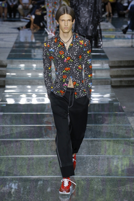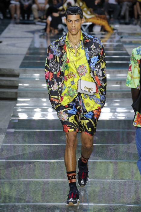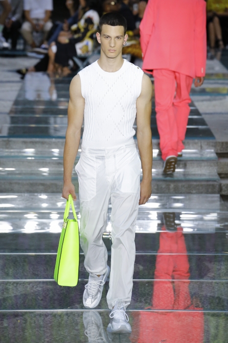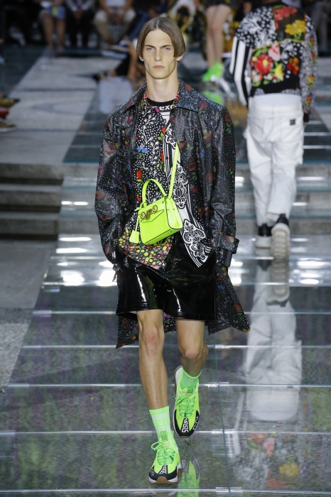 Показ новой коллекции Versace, как и Dolce & Gabbana, получился смешанным: подиум делили загорелые итальянцы и самые высокооплачиваемые модели в лице Кендалл Дженнер и Беллы Хадид. С их помощью Донателла Версаче продолжила рушить гендерные границы: одежда и тех, и других была практически одинаковой. Кто сказал, что мужчины не могут носить кросс-боди, пальто из питоновой кожи, рубашки на два размера меньше и прозрачные неоновые дождевики? У бренда все это выглядит настолько красиво и гармонично, что мы не сомневаемся — именно так бы выглядел Джанни Версаче, если бы остался в живых.