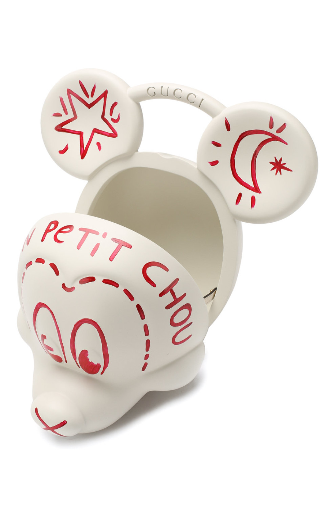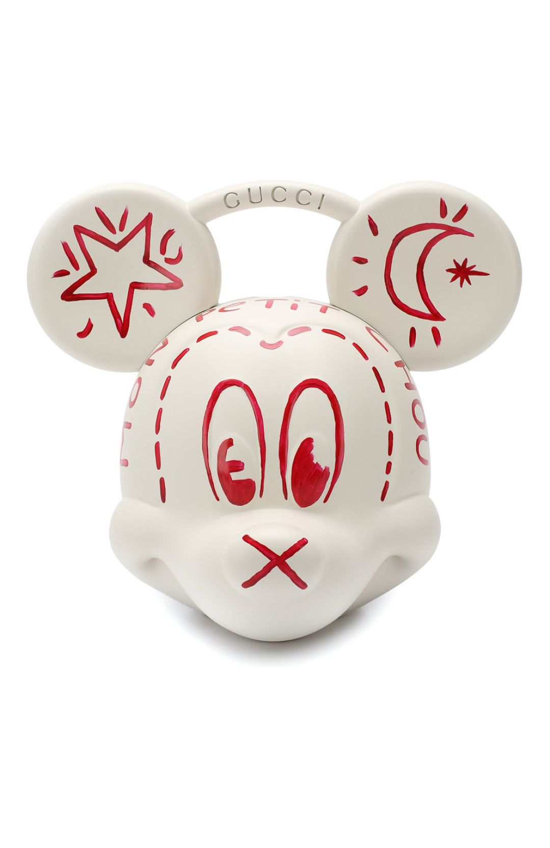 Мы нашли идеальное средство стайлинга для выпускного платья — сумку Gucci в виде головы Микки Мауса, выпущенную в честь 90-летия культового диснеевского персонажа. Команда Алессандро Микеле сделала ее из прочного пластика по технологии 3D-печати в двух вариантах: бесцветном и полноцветном. И последний уже зарекомендовал себя как арт-объект: сумка — вместе с сотней других вещей из архивов бренда — выставлена в музее бутика Gucci Garden, расположенном на флорентийской площади Синьории.