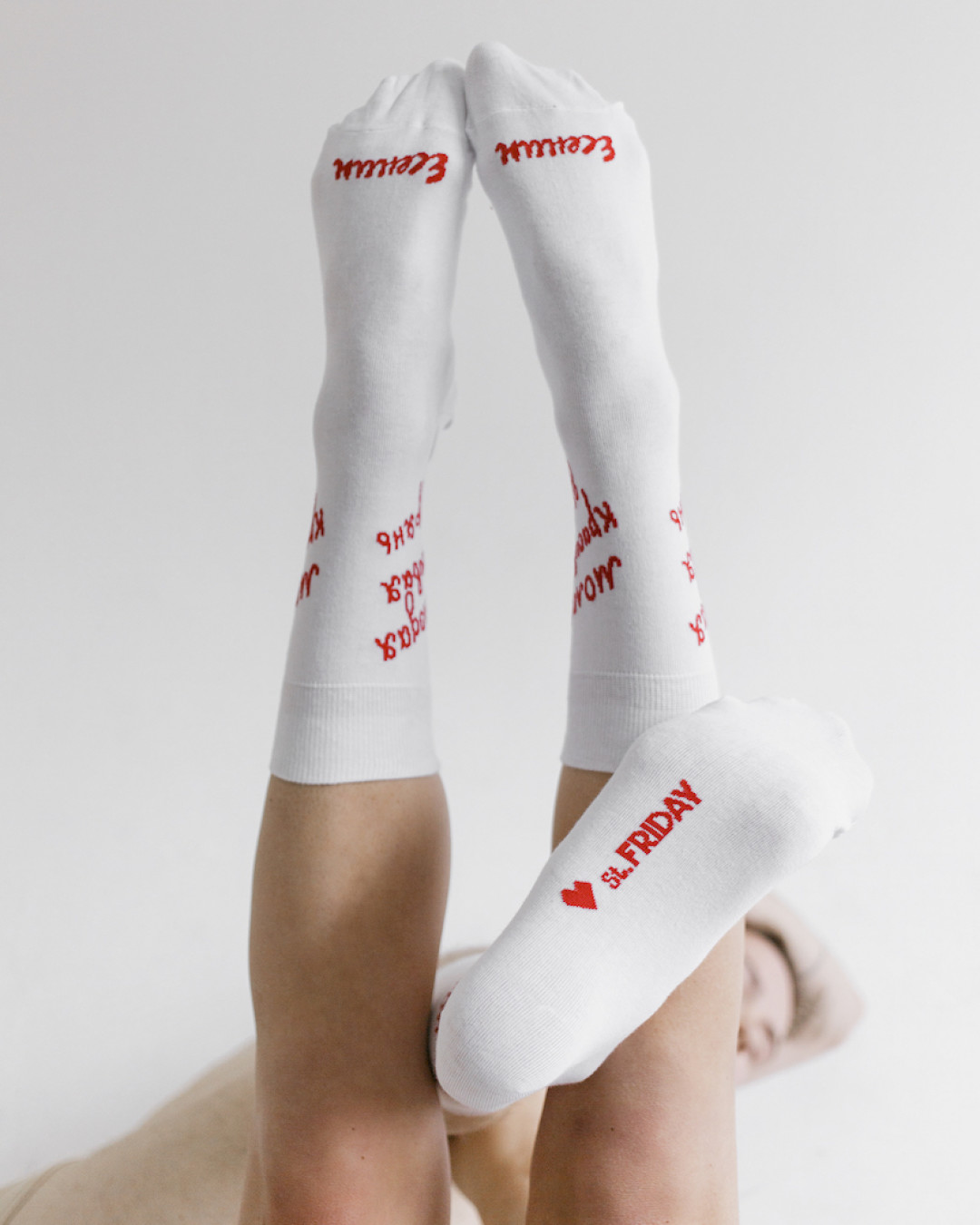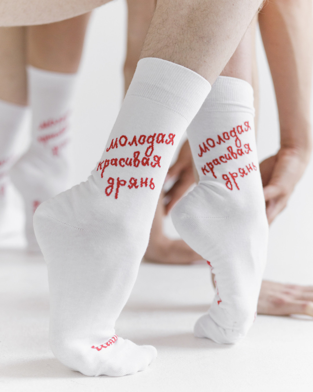 Чулочно-носочный бренд из Петербурга St. Friday Socks выпустил продолжение своей поэтической коллекции. После прошлогодних аксессуаров с цитатами из произведений Достоевского, Бродского и Довлатова («Не говно ли я?», «Что значит “нажрался”?» и «Тварь дрожащая/Право имеющий») марка представила носки с фразами из нецензурных стихотворений Пушкина, Лермонтова, Есенина, Маяковского и Цветаевой («Молодая, красивая дрянь», «Одинокий и пьяный», «Живу, как денди»). Как объясняет создатель и креативный директор St. Friday Socks Сергей Тонков, на создание коллекции ушло несколько месяцев, в течение которых команда проводила факт-чеккинг произведений в библиотеках. Поэтому помимо самих носков, у бренда вышел гид по истории появления каждого стихотворения и каждой «запрещенной» фразы — его можно прочитать на сайте myfriday.ru.
