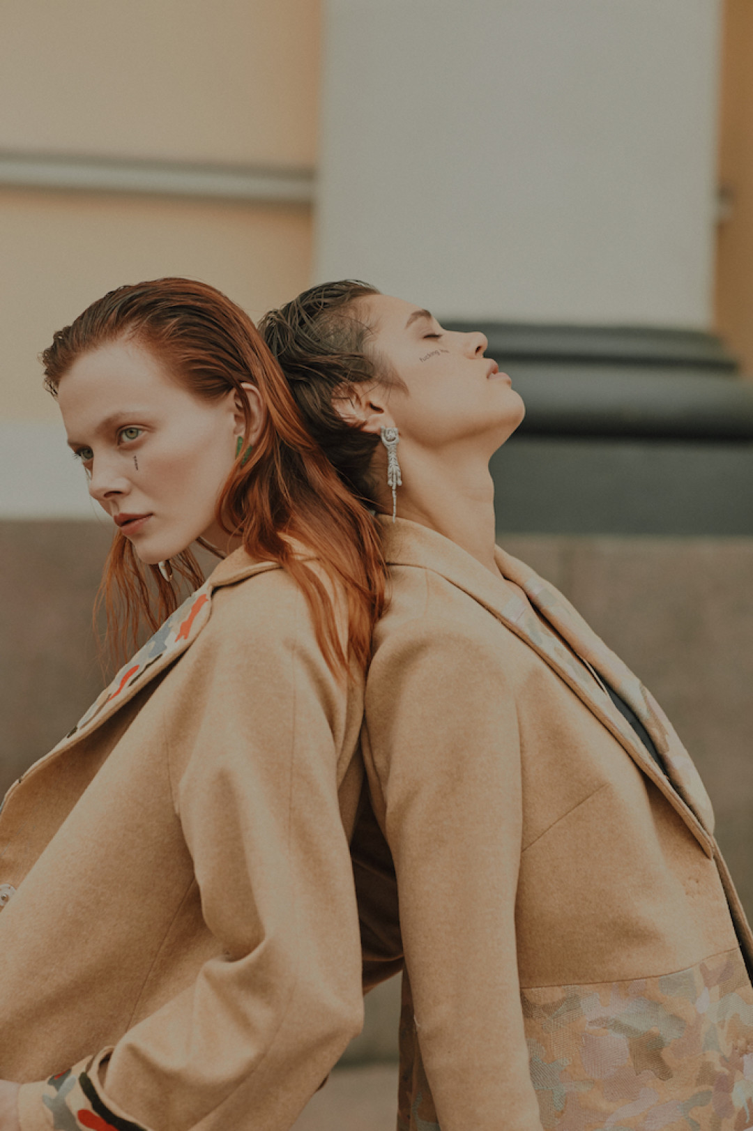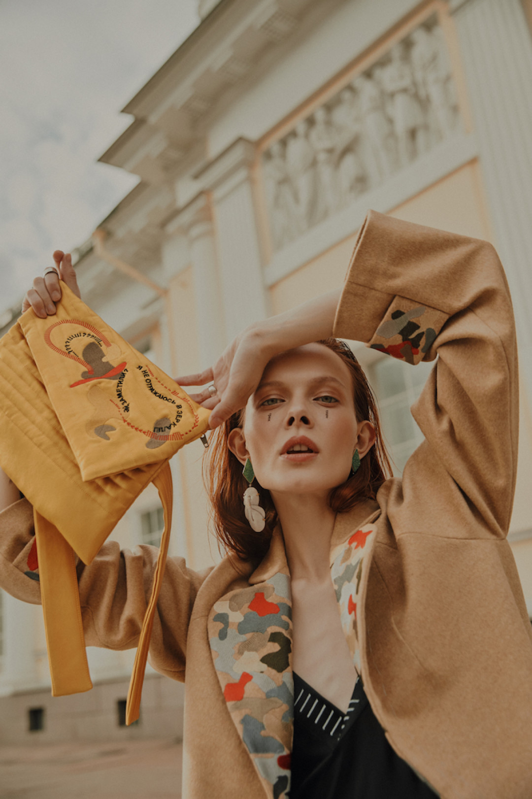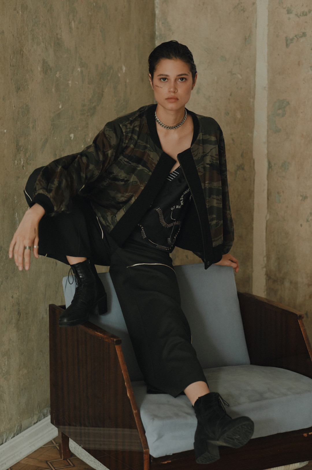 «Концепцию коллекции я придумала, когда увидела материал — для меня это обычная история. Мне очень понравилась ткань камо: она очень "техническая", ее используют рыбаки, например. Мудборд был у меня в голове, идеи шли в двух направлениях: что-то нежное, шелковое и что-то "защитное". В итоге все это сошлось в единую историю.