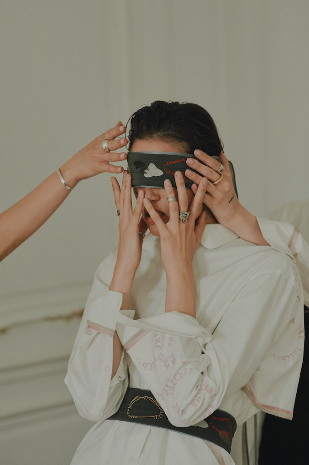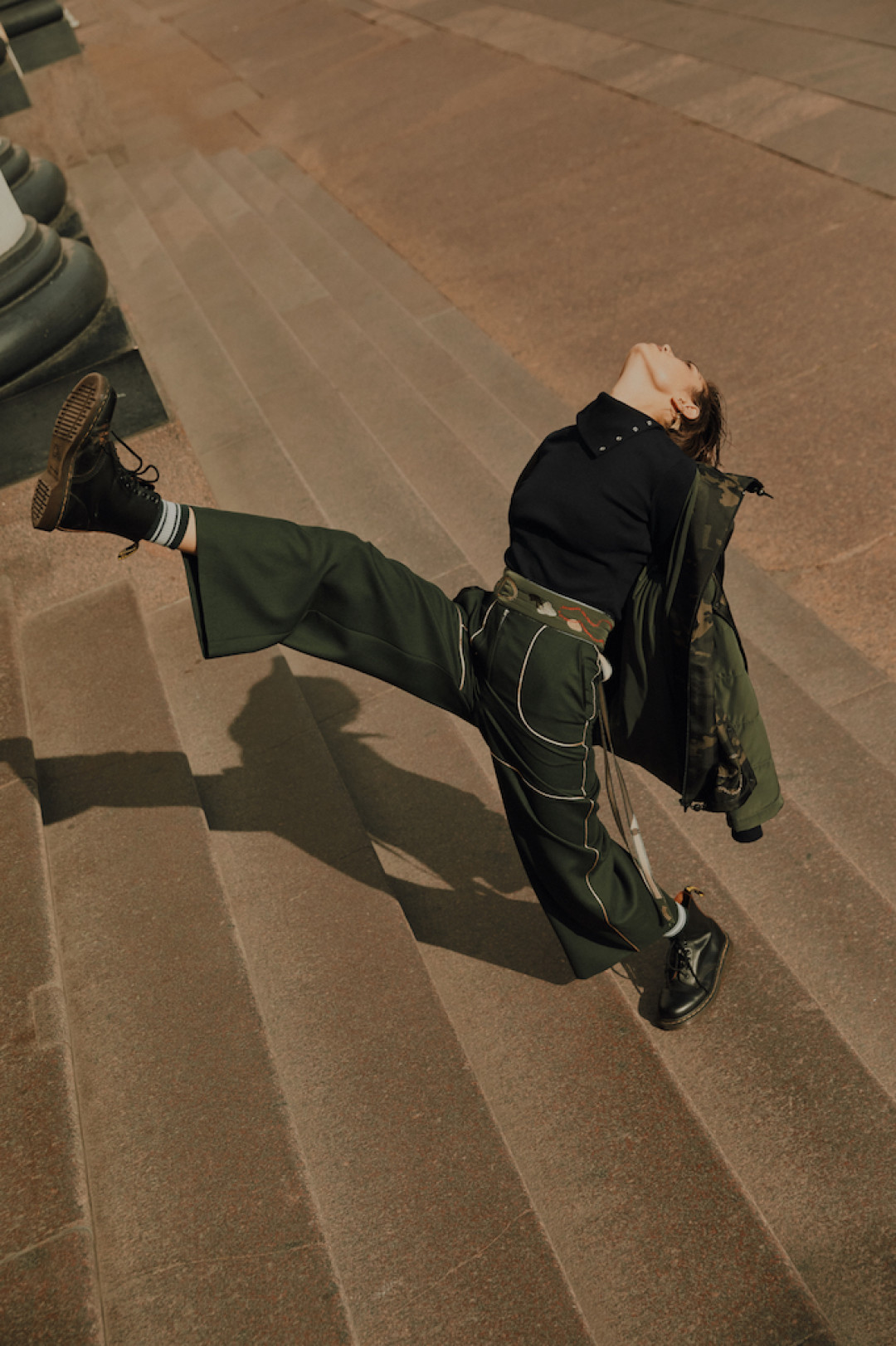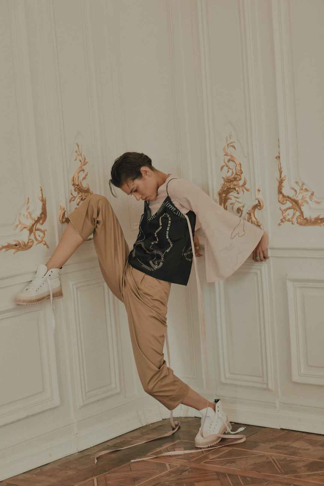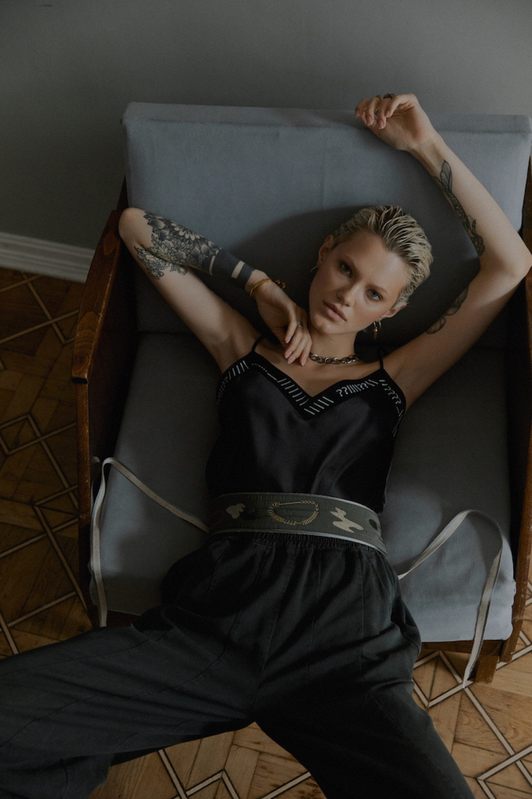 «Концепцию коллекции я придумала, когда увидела материал — для меня это обычная история. Мне очень понравилась ткань камо: она очень "техническая", ее используют рыбаки, например. Мудборд был у меня в голове, идеи шли в двух направлениях: что-то нежное, шелковое и что-то "защитное". В итоге все это сошлось в единую историю.