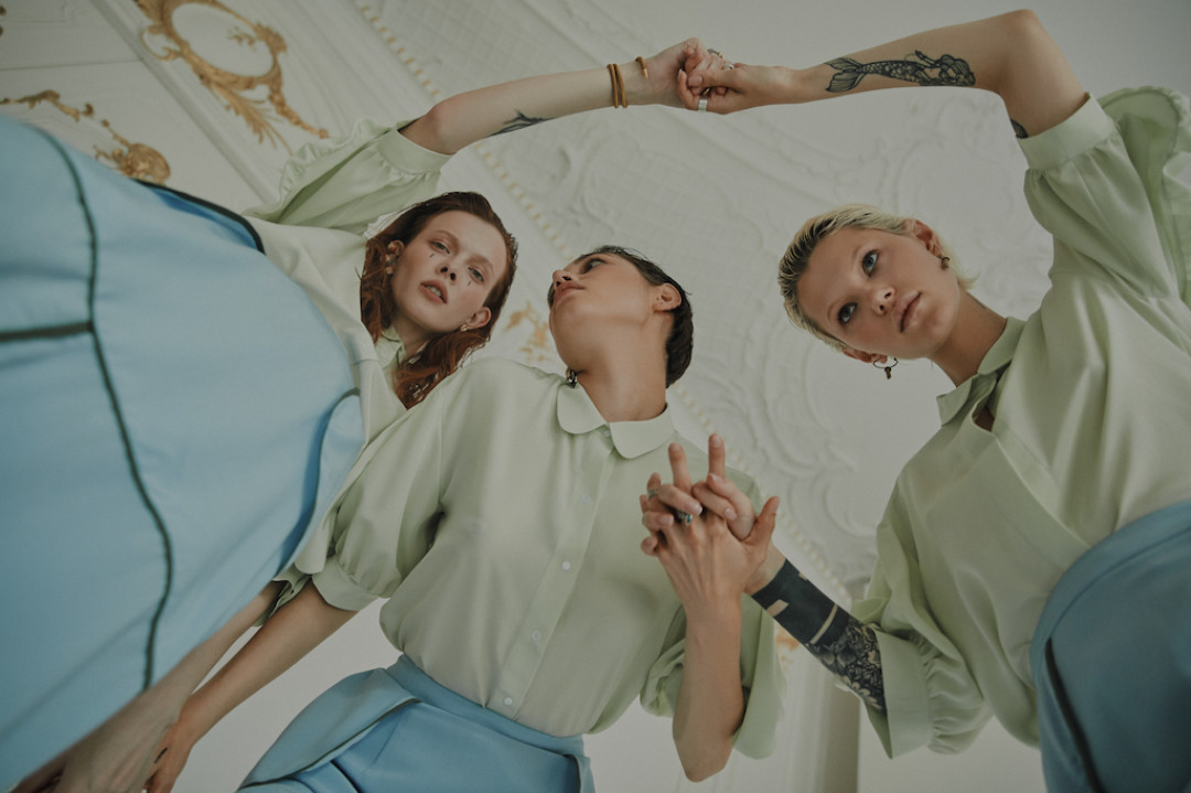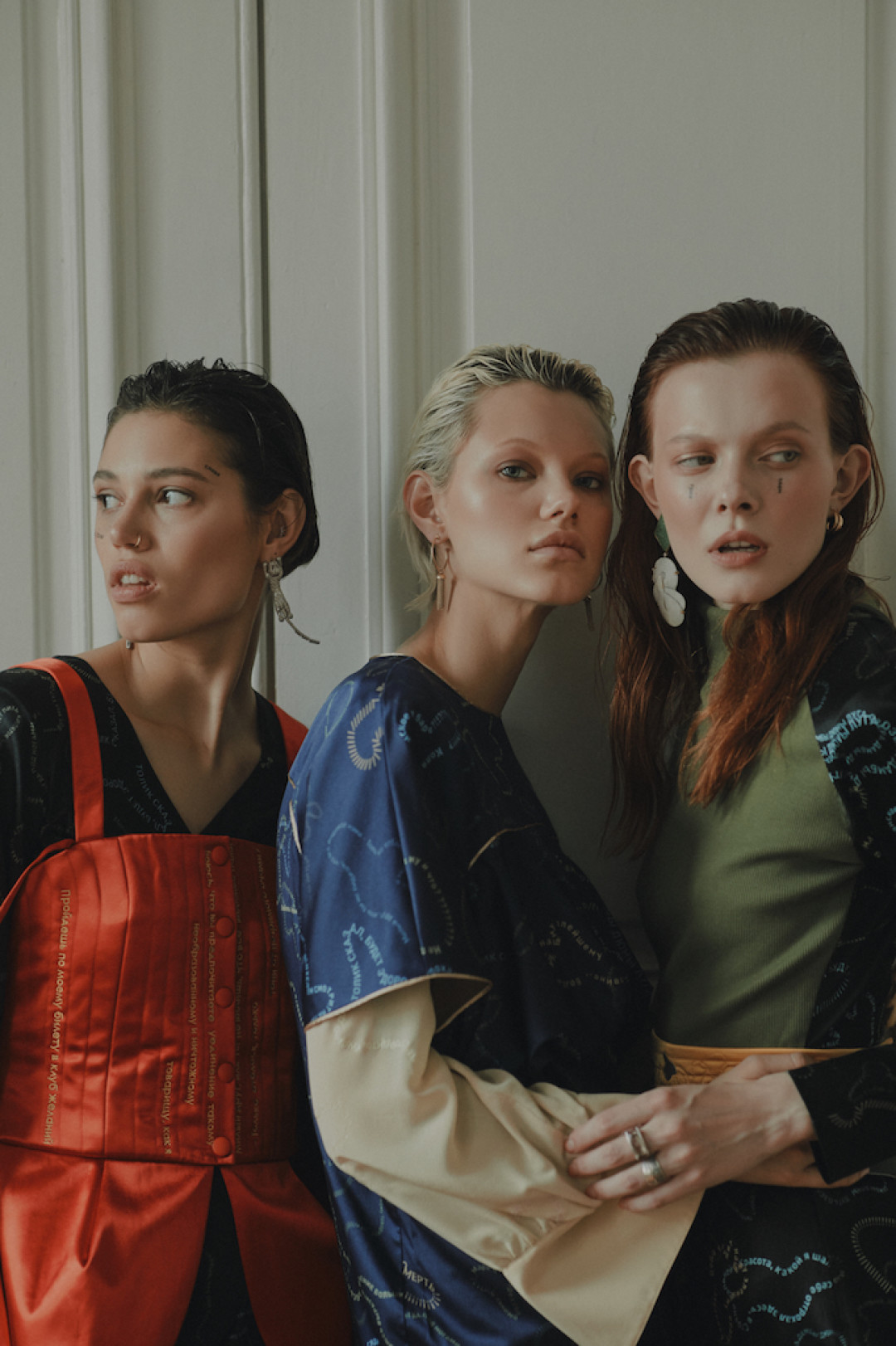 Бренд Ola Ola, который дебютировал в этом сезоне с коллекцией, украшенной сюрреалистичной вышивкой от художницы Данини (гусары с пакетами из «Пятерочки» и безголовые четвероногие танцовщики), представил новые осенне-зимние вещи. Это блузы с присборенной кокеткой, куртки с двойными рукавами, платья с воланами на груди и стеганые бюстье с баской.