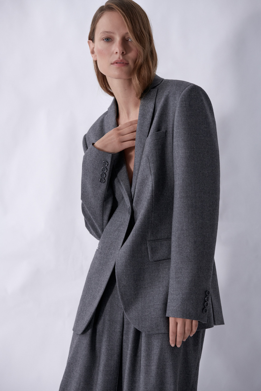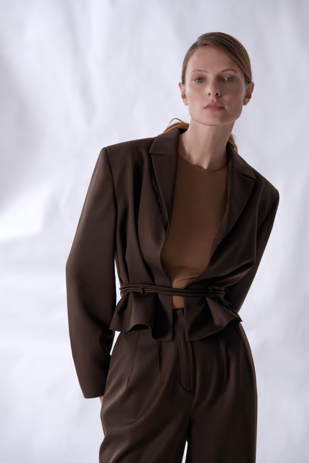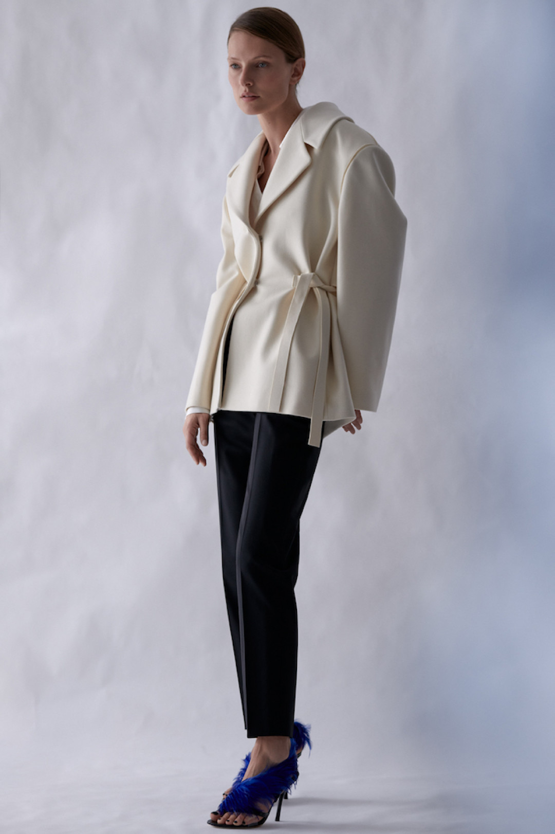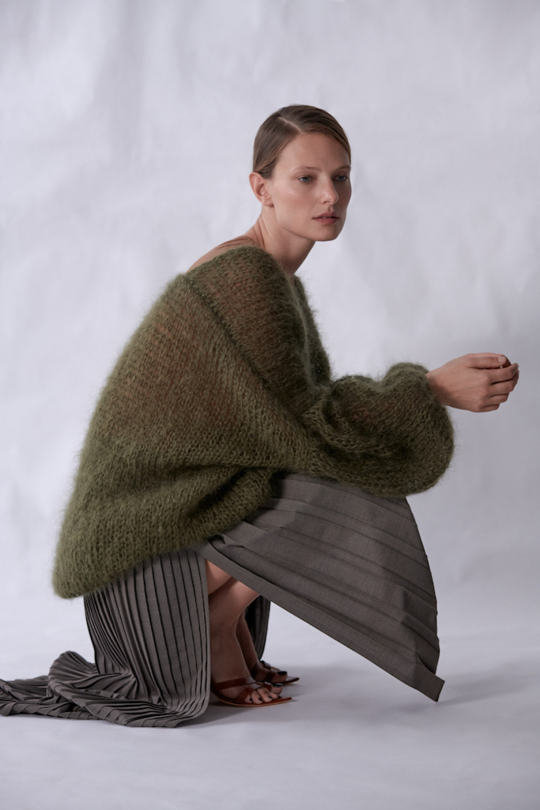 У каких российских дизайнеров искать одежду в стиле «старого Celine»? У Анны Андриенко и Натальи Бузаковой из osome2some! Мало того, что девушки делают отличные лаконичные вещи (только посмотрите на разноуровневую плиссированную юбку, «деформированный» оверсайзовый жакет и белоснежное платье с чашками-бюстье, которое может сойти за свадебное), так еще и мастерски конструируют верхнюю одежду! В их осенне-зимней коллекции — минималистичные пальто с двойным воротником, на одной пуговице и превращенное в домашний халат, а также шуба бежевого цвета, выполненная из верблюжьей шерсти и шелка.
