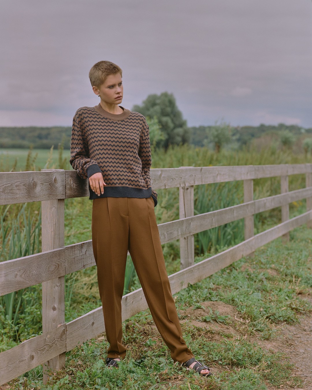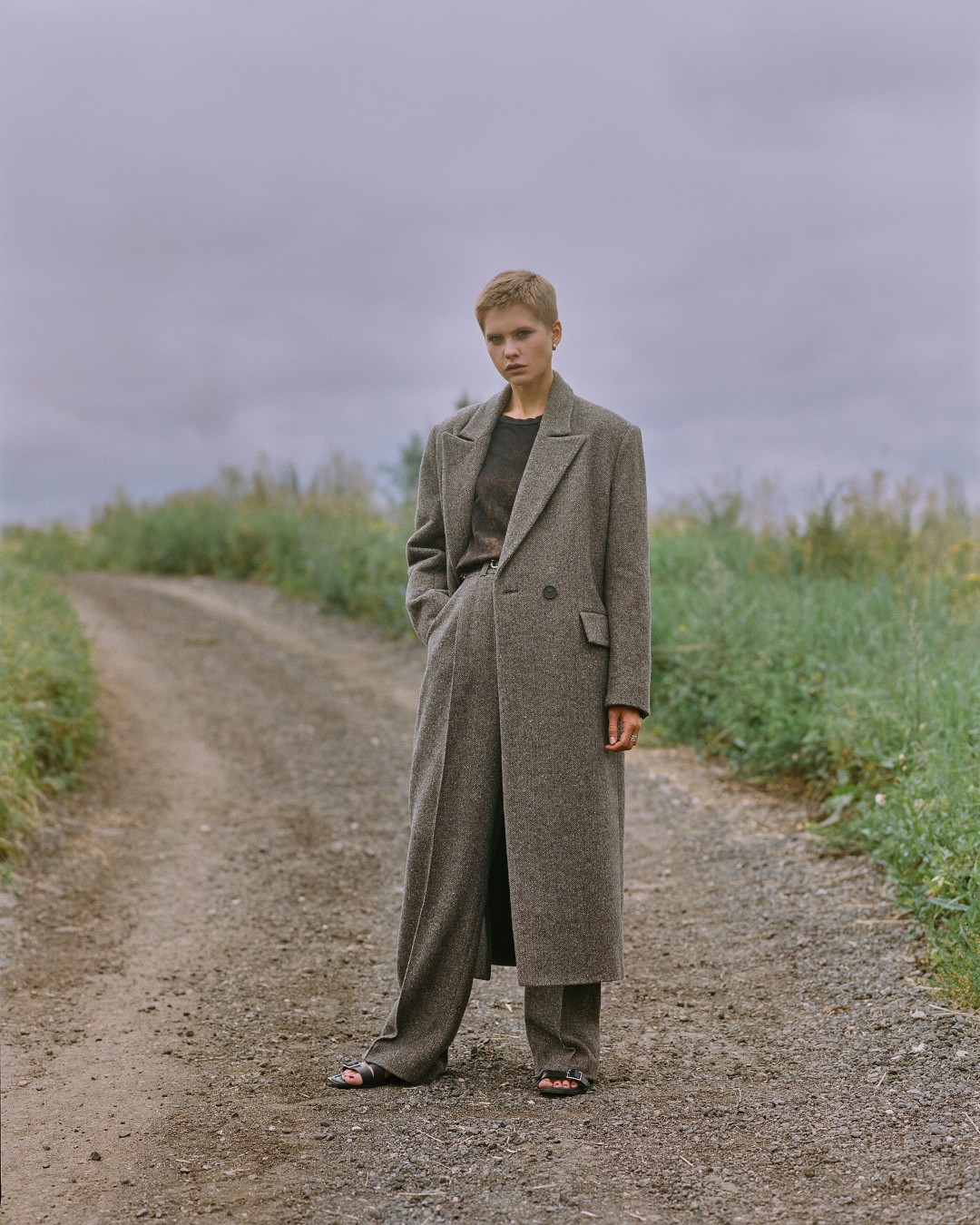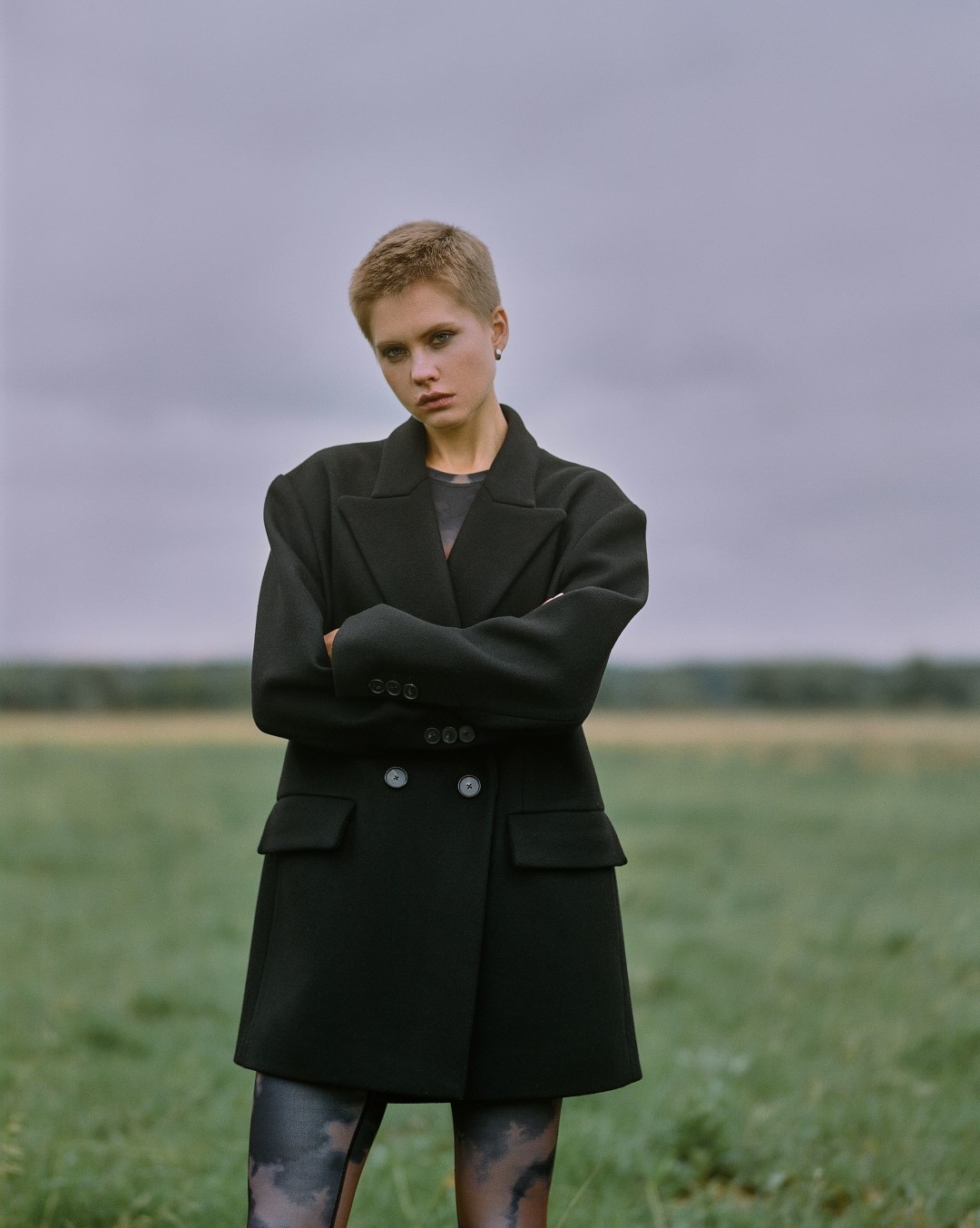 Главной вещью марки остается пальто — удлиненное, напоминающее военную форму, или из искусственного меха, будто бы плюшевое. Некоторые из них (как и брюки с завышенной талией, свитер с гипнотическим принтом и теплое вязаное платье) уже поступили в продажу на сайте forma-forma.ru, а также приедут в Subbota Showroom в Петербурге.