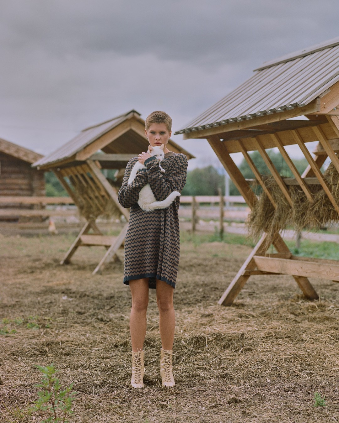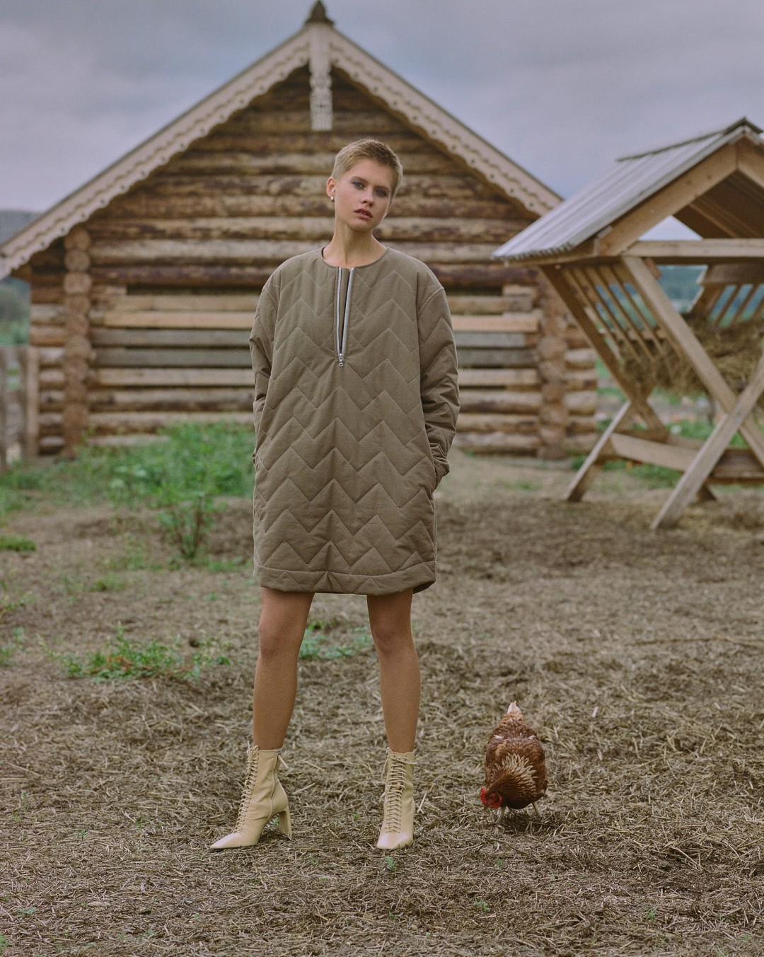 Московский бренд |форма|, основанный Татьяной Суховой и Еленой Глуховой в 2013 году, выпустил коллекцию на грядущий осенне-зимний сезон. По задумке дизайнеров, все вещи из нее — будь то футболка с эффектом тай-дай, стеганое платье или рубашка из вареного денима — напоминают гардероб девушки Марка Рентона из фильма «На игле», которые так же отлично смотрятся в кантри-локациях (и не страдают от прогулки с кошками, собаками и даже петухами на руках — проверено съемкой лукбука!).