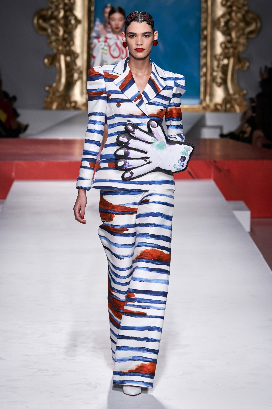 Поэкспериментировав с фломастером, который «разрисовал» платья, шляпы и даже капроновые колготки в коллекции Moschino весна-лето 2019, креативный директор Джереми Скотт замахнулся на кисти и краски. На это гостям его нового показа в Милане намекнули еще в процессе раздачи пригласительных — они были сделаны в виде палитры для смешивания цветов и кисти с названием бренда.