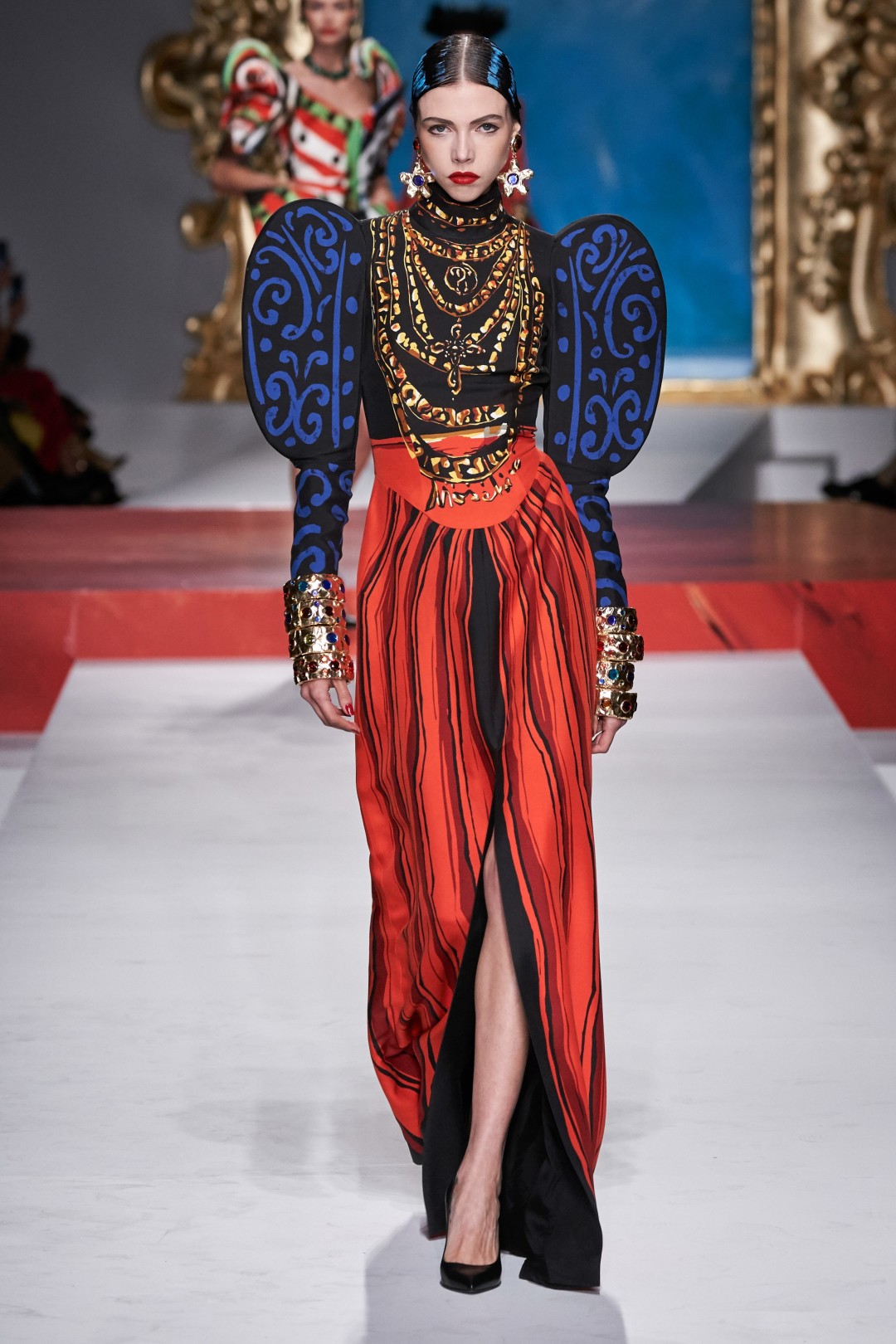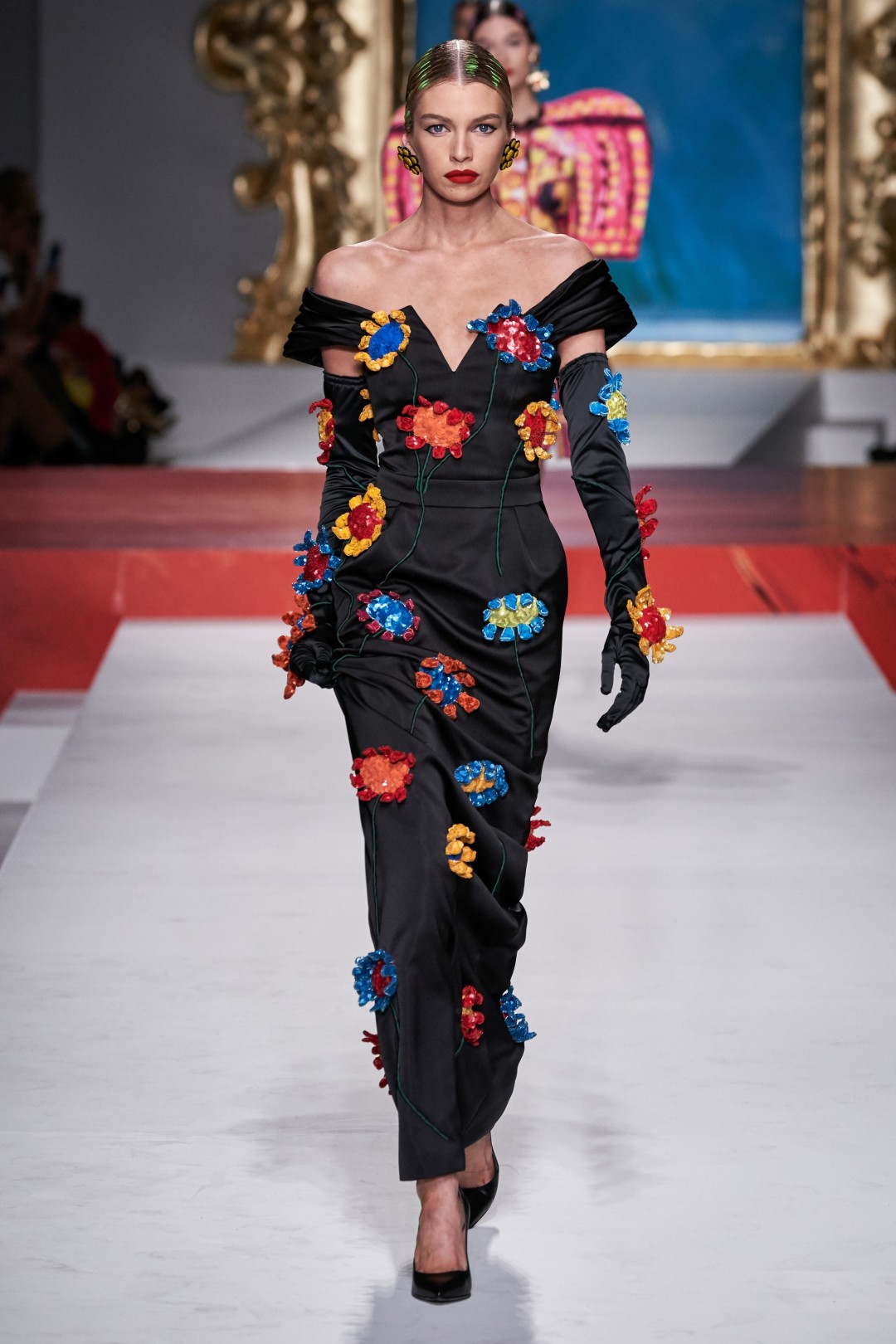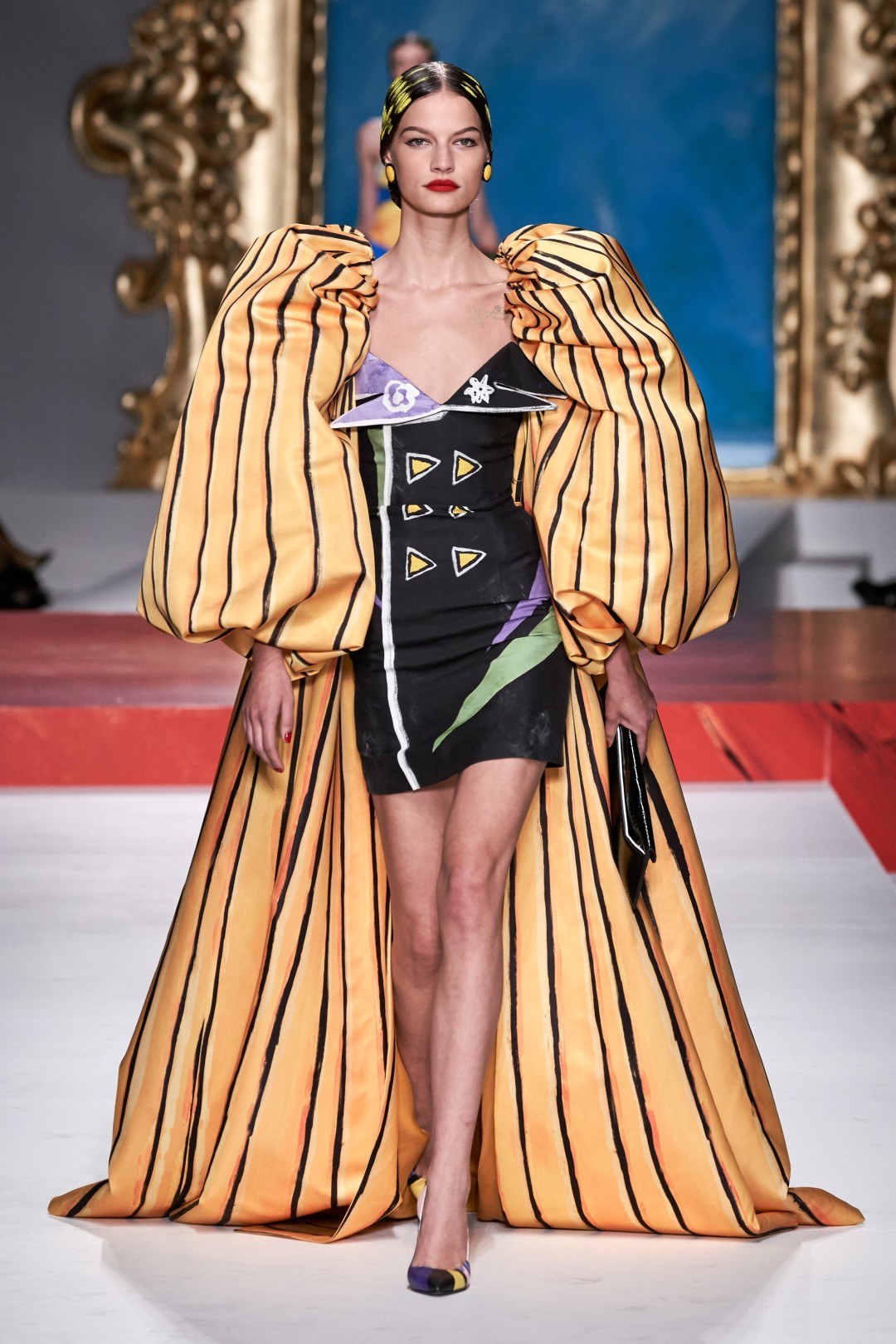 Само шоу выглядело как выставка картин Пабло Пикассо: Moschino перенесли его «Авиньонских девиц», «Арлекина», «Девушку с мандолиной», «Девушку перед зеркалом» и даже эскизы декораций для балета «Квадро фламенко» на одежду, вручную нарисовав принты перед их оцифровкой. Об этом Джереми Скотт рассказал на бэкстейдже показа в окружении своих муз (ведь они должны быть у каждого художника!): Ирины Шейк, Стеллы Максвелл, Аду Акеш, Алеси Кафельниковой, Кайи Гербер, Беллы и Джиджи Хадид, которая закрыла шоу в свадебном платье.