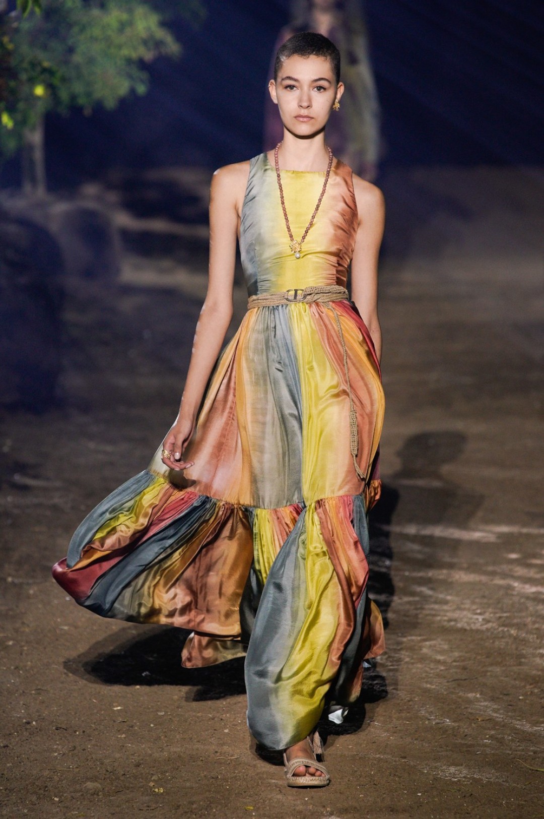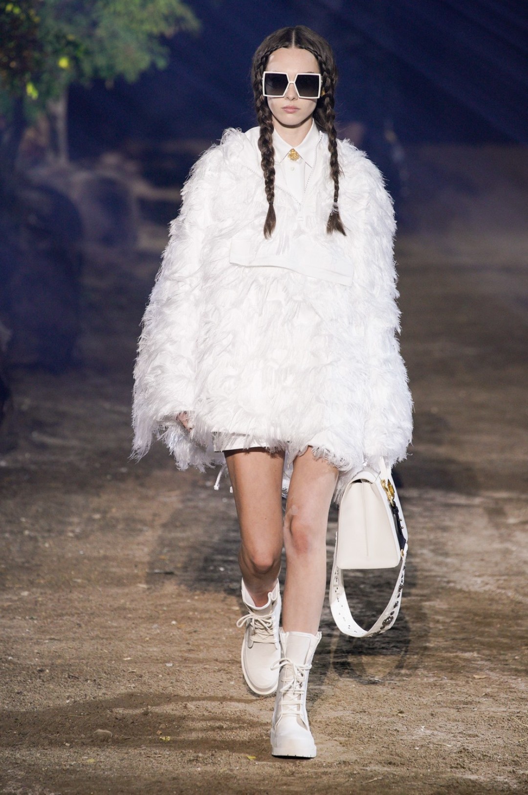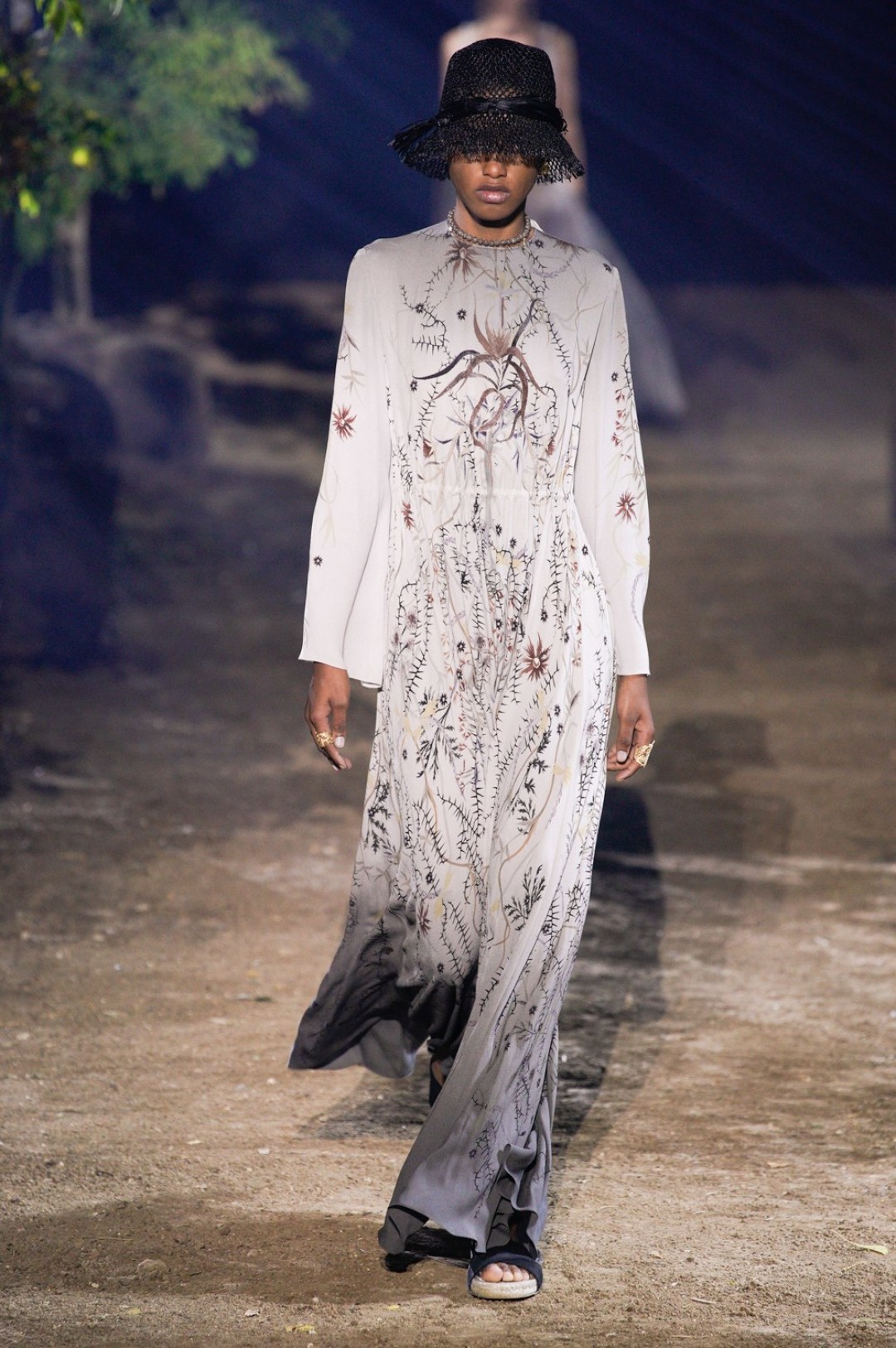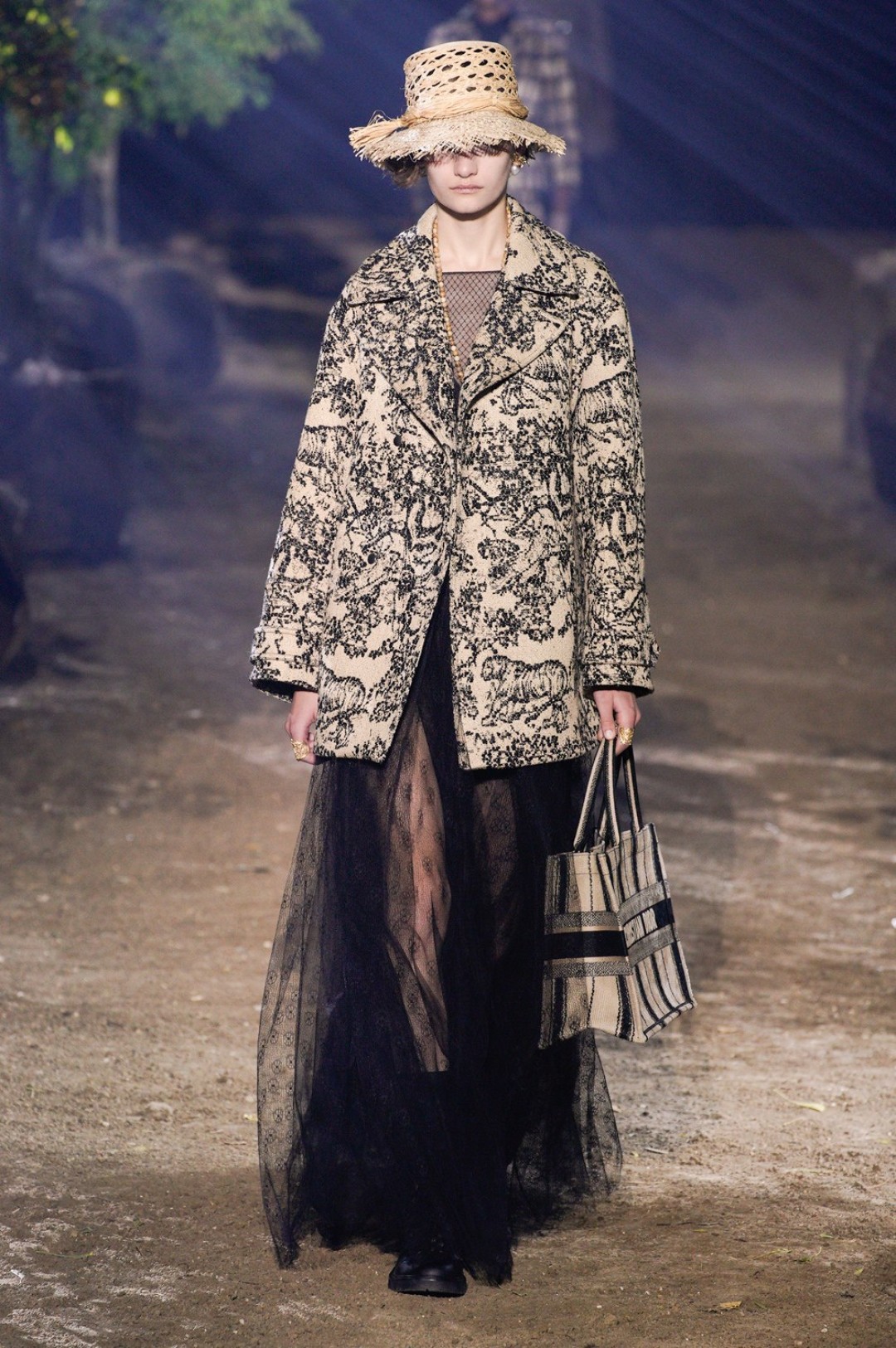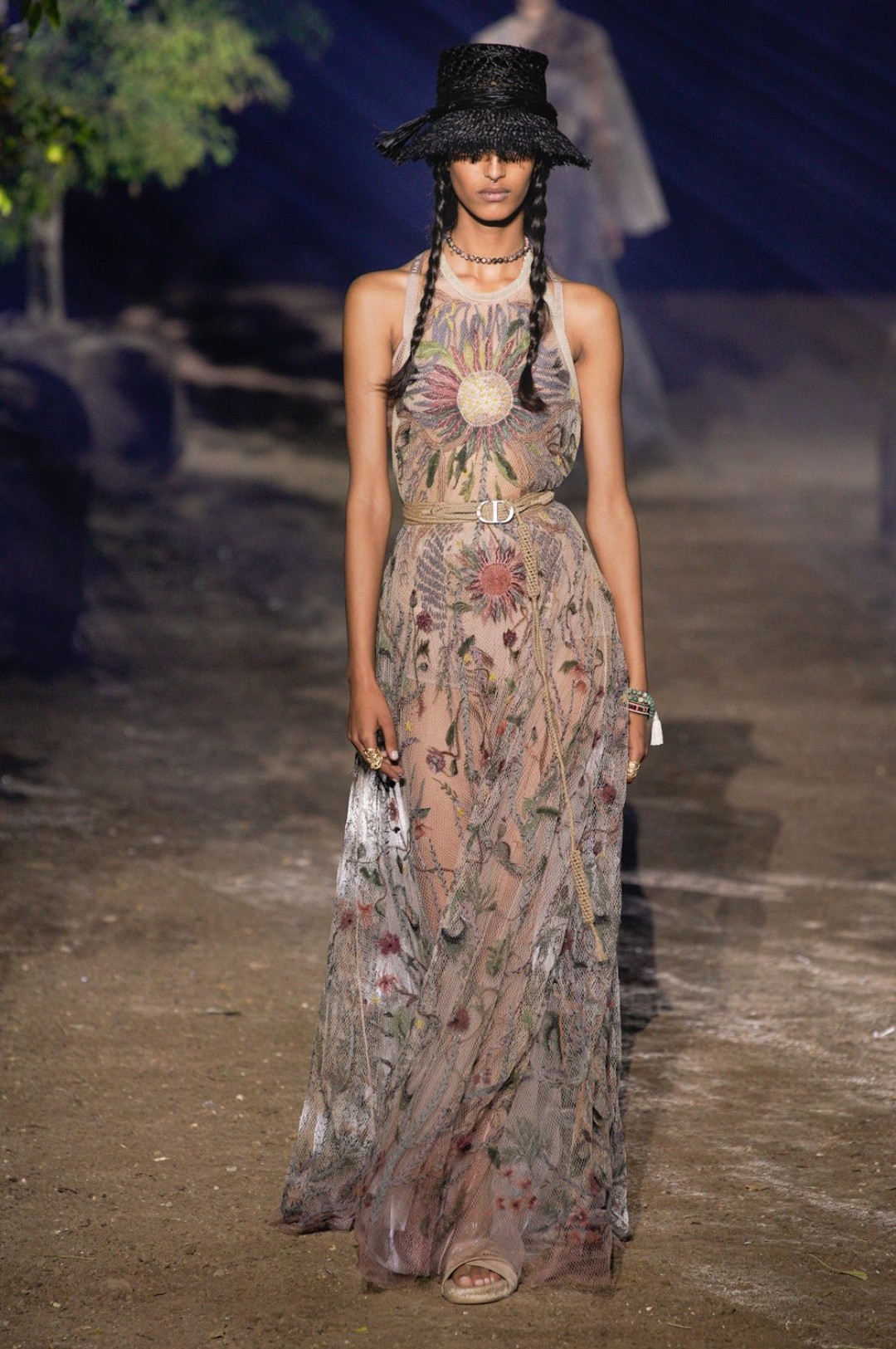 Многие вещи дополняли плетеные панамы, надетые на две косички, а также сетчатые перчатки и каучуковые сапоги. Именно в таком образе удобнее работать в цветочном саду, который к показу, кстати, тоже прилагался. По периметру ипподрома Longchamp, над сценографией которого работала студия ландшафтного дизайна Atelier Coloco, были расставлены 164 дерева — после весенне-летнего шоу их, по словам представителей Dior, высадят в разных районах Парижа.