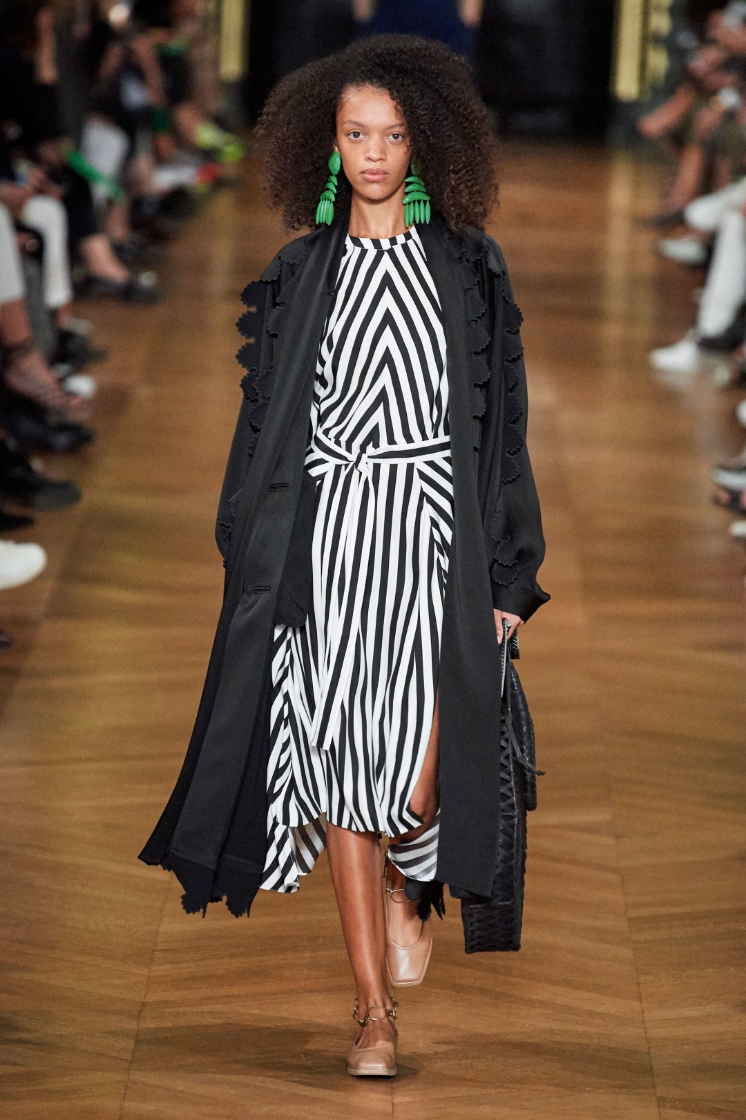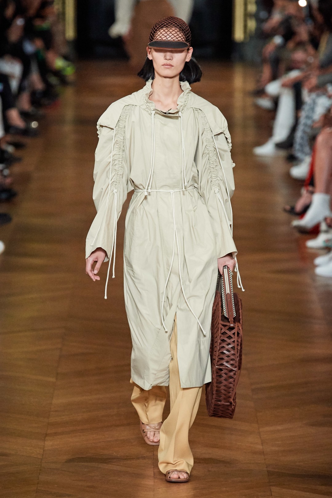 В том же документе дизайнер называет новую коллекцию «самой устойчивой из всех когда-либо созданных»: одежда в ней сделана из переработанного полиэстера, органического хлопка и сертифицированной шерсти, кроссовки — из пластиковых бутылок, а сумки — из мадагаскарской рафии. При этом экологичная составляющая революционных новинок неочевидна: это красивые минималистичные жакеты, блузы с объемными рукавами, брюки с заниженной талией, жилеты с вместительными карманами и платья цвета (чистого и очищенного от пластика!) океана.