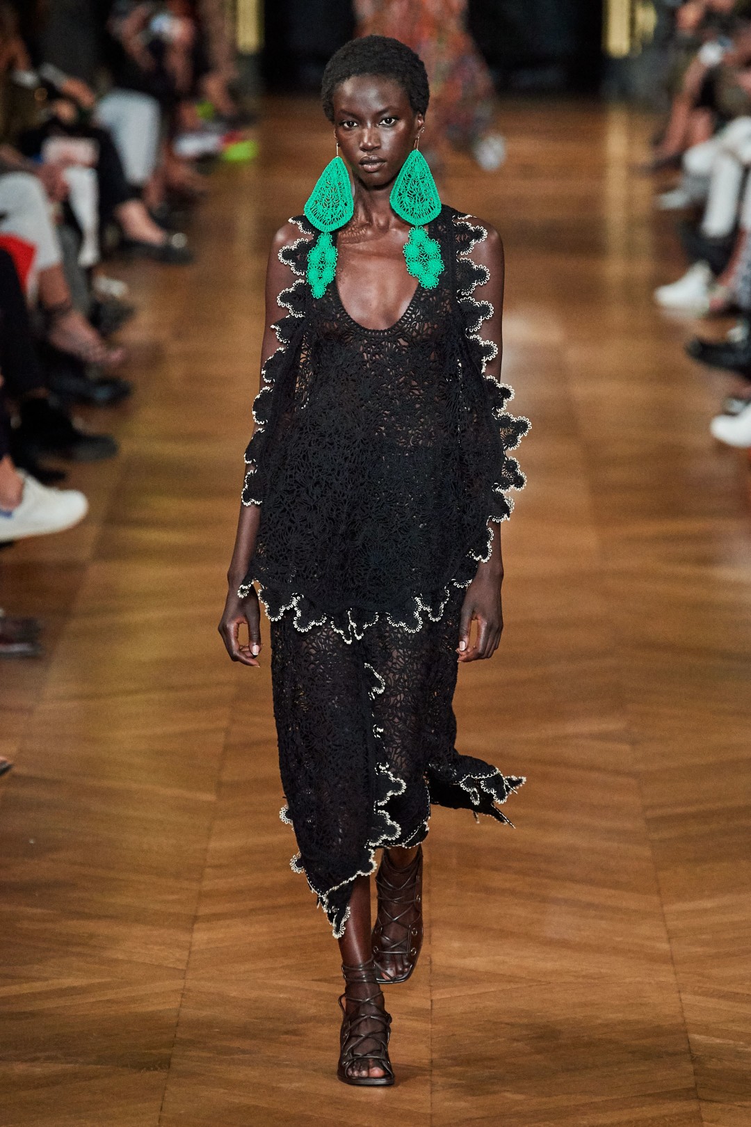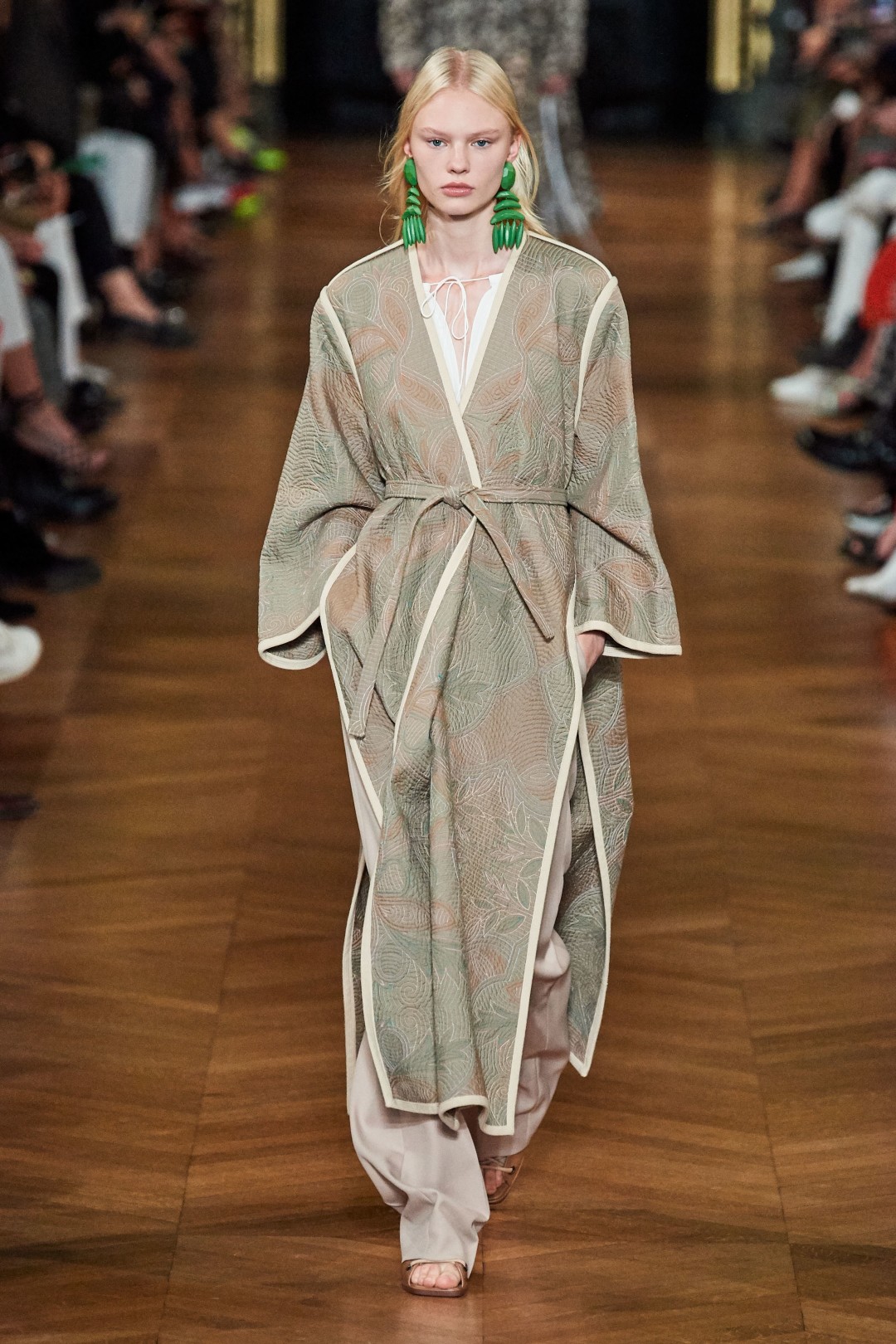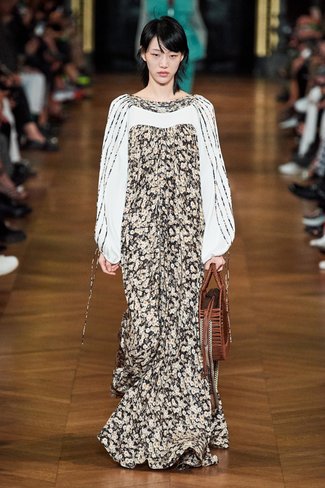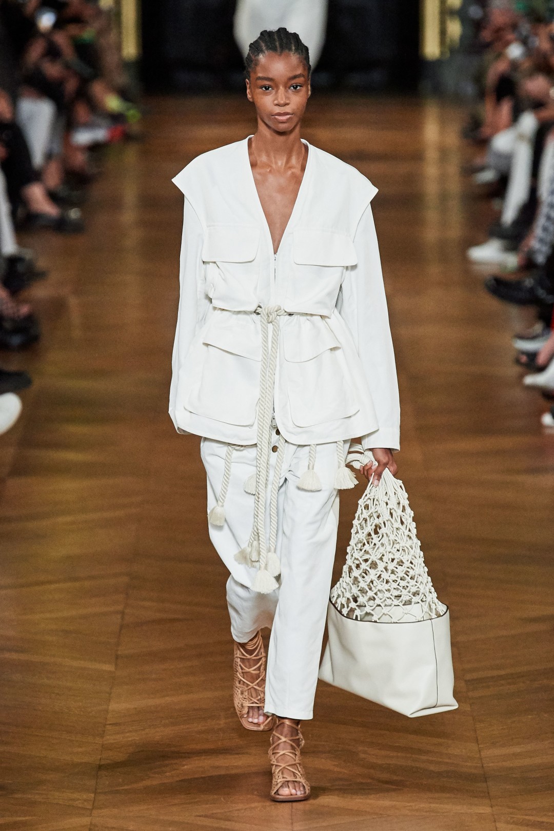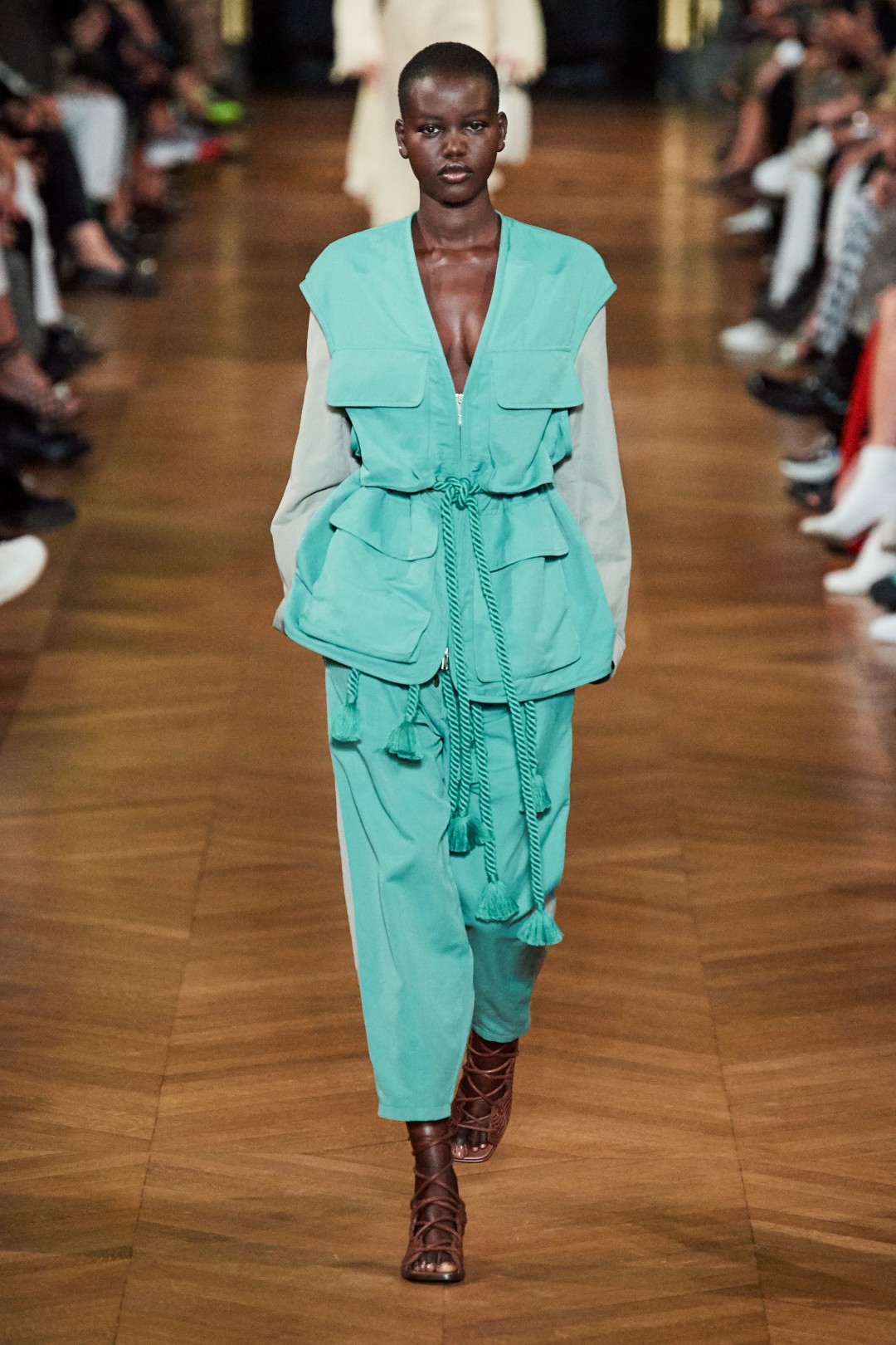 Одними из последних на подуиме появились платья, блузы и сарафаны с тропическими принтами, дублировавшими сет-дизайн парижского показа. На стенах Opera Garnier проигрывался видео-ряд с изображением совокупляющихся зебр, попугаев, носорогов и других животных — как демонстрация самого простого (и пожалуй, самого эффективного!) примера сохранения планеты.
