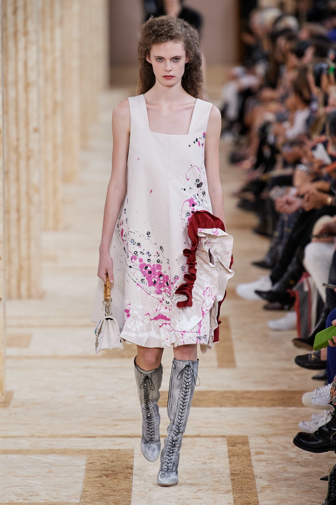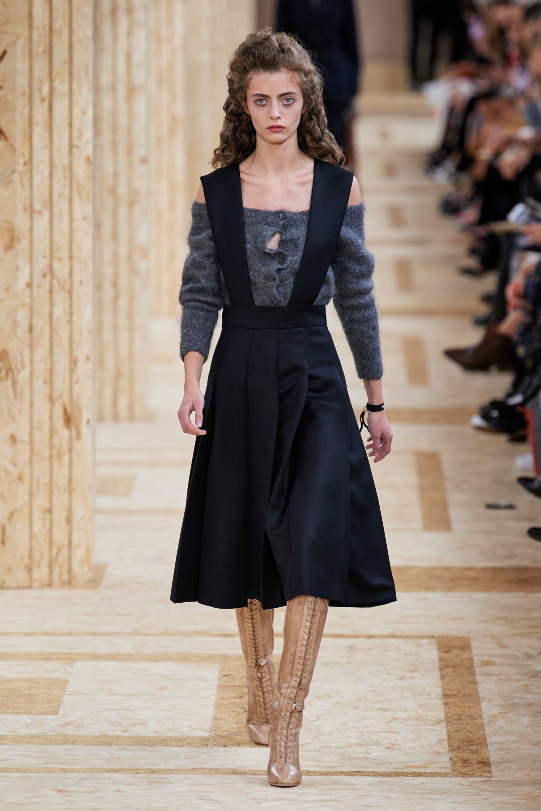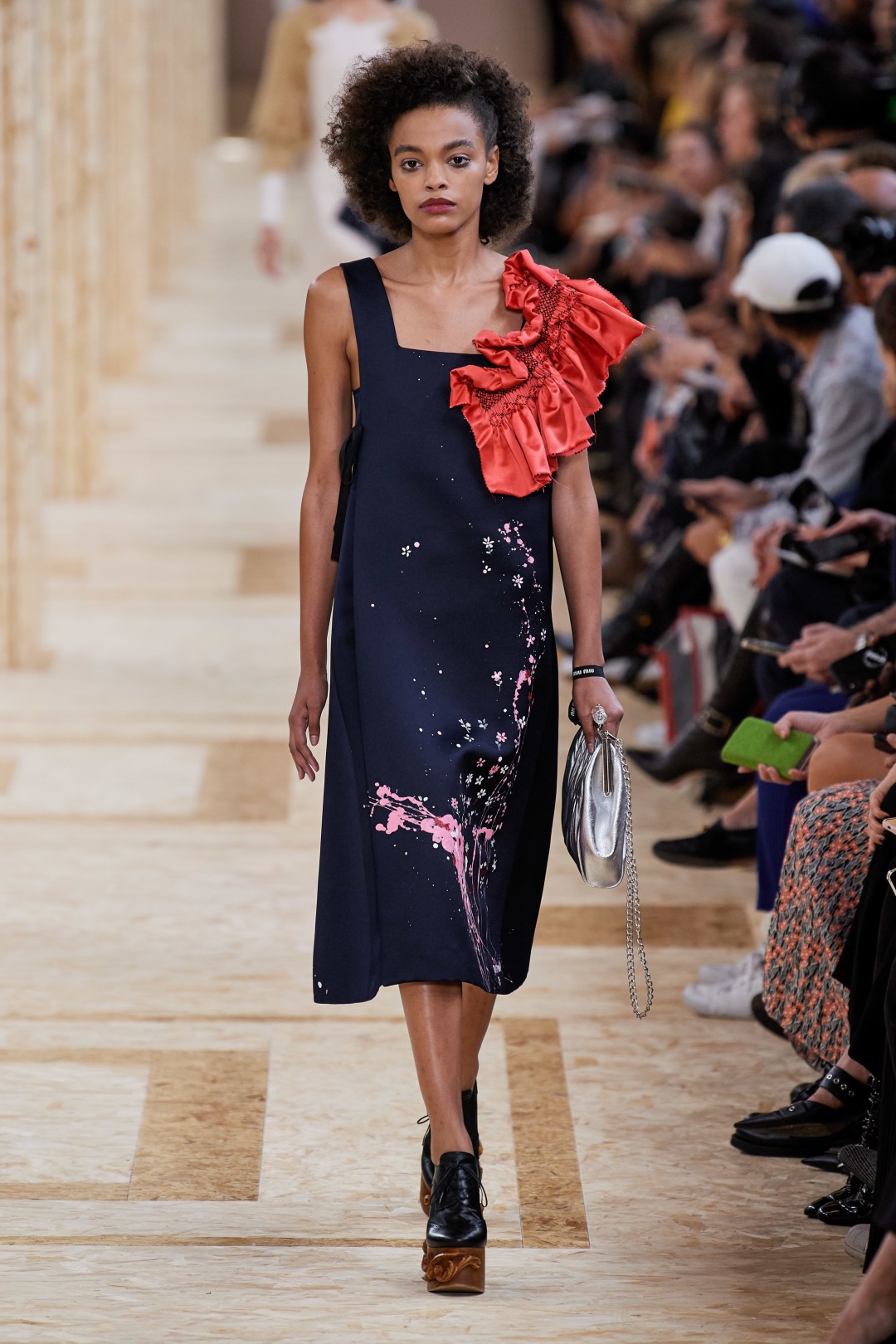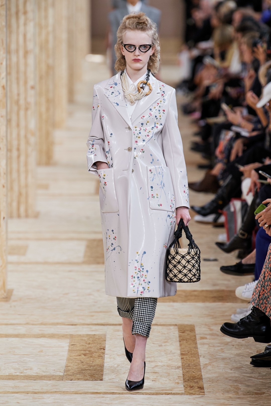 В Йенском дворце в Париже прошел показ новой коллекции Miu Miu, над сценографией которого работало архитектурное бюро Рема Колхаса OMA. Несмотря на то, что вещи ориентированы на весенне-летний сезон, они получились довольно теплыми: платья-фартуки, напоминающие школьные, виниловые юбки, украшенные цветами, и топы с драпировками, выполненные в разных оттенках, шли вместе с мягкими кардиганами, надетыми в большинстве случаев под вещи, а не на них.