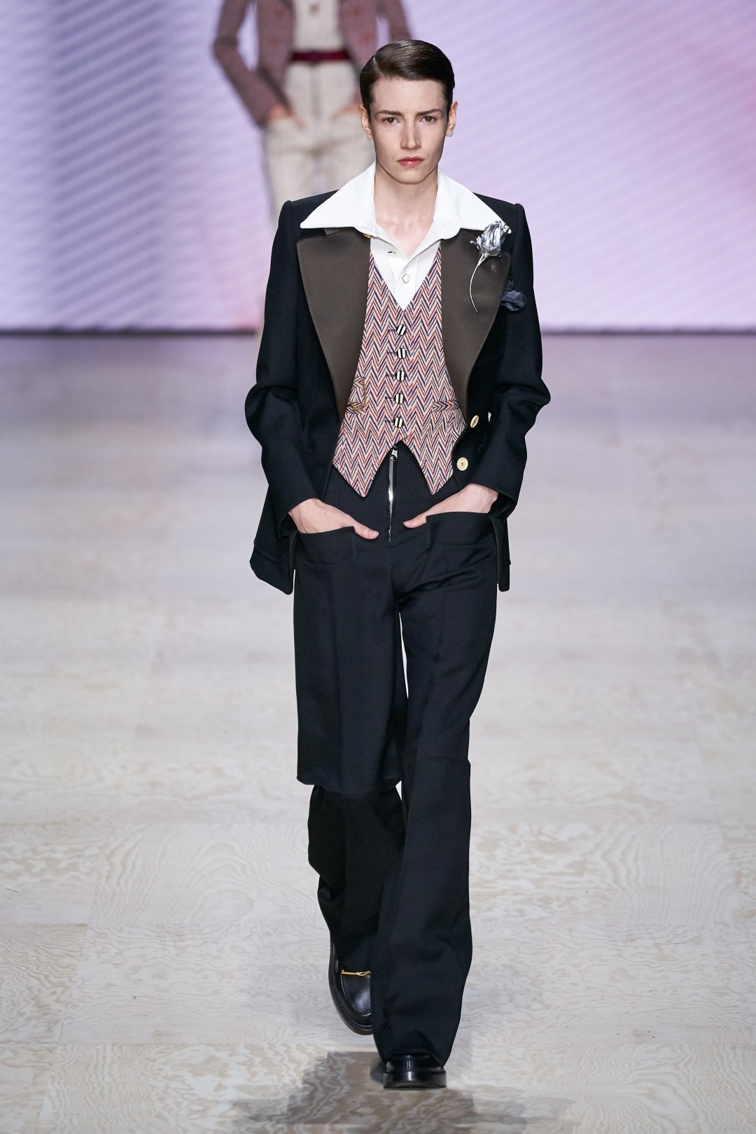 В самом шоу креативный директор Николя Гескьер рассказывал о Прекрасной эпохе — части французской истории, которая, по его мнению, «очень интересна в культурном отношении с точки зрения эмансипации женщин и литературы с Прустом». К ней отсылали рубашки с рукавами-буффами, жакеты с бутоньерками на лацканах, платья с плиссированными манишками и прически, как у «девушек Гибсона» — идеала женской красоты, созданного американским иллюстратором Чарльзом Дана Гибсоном на рубеже XIX и XX столетий.