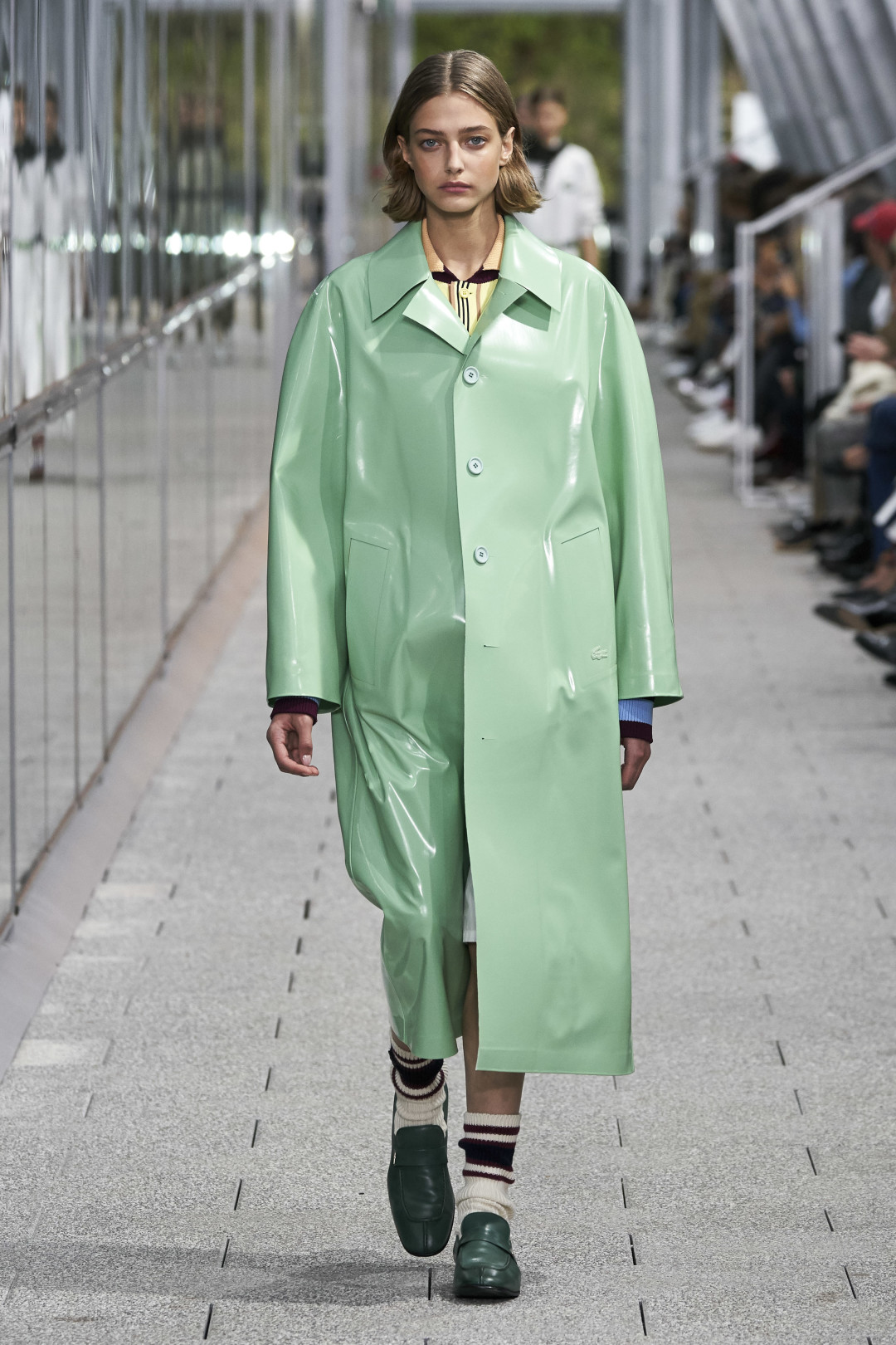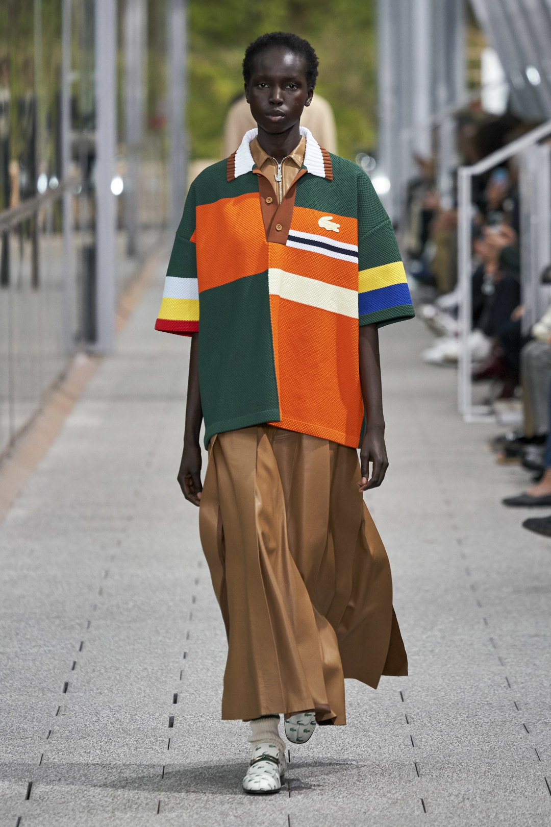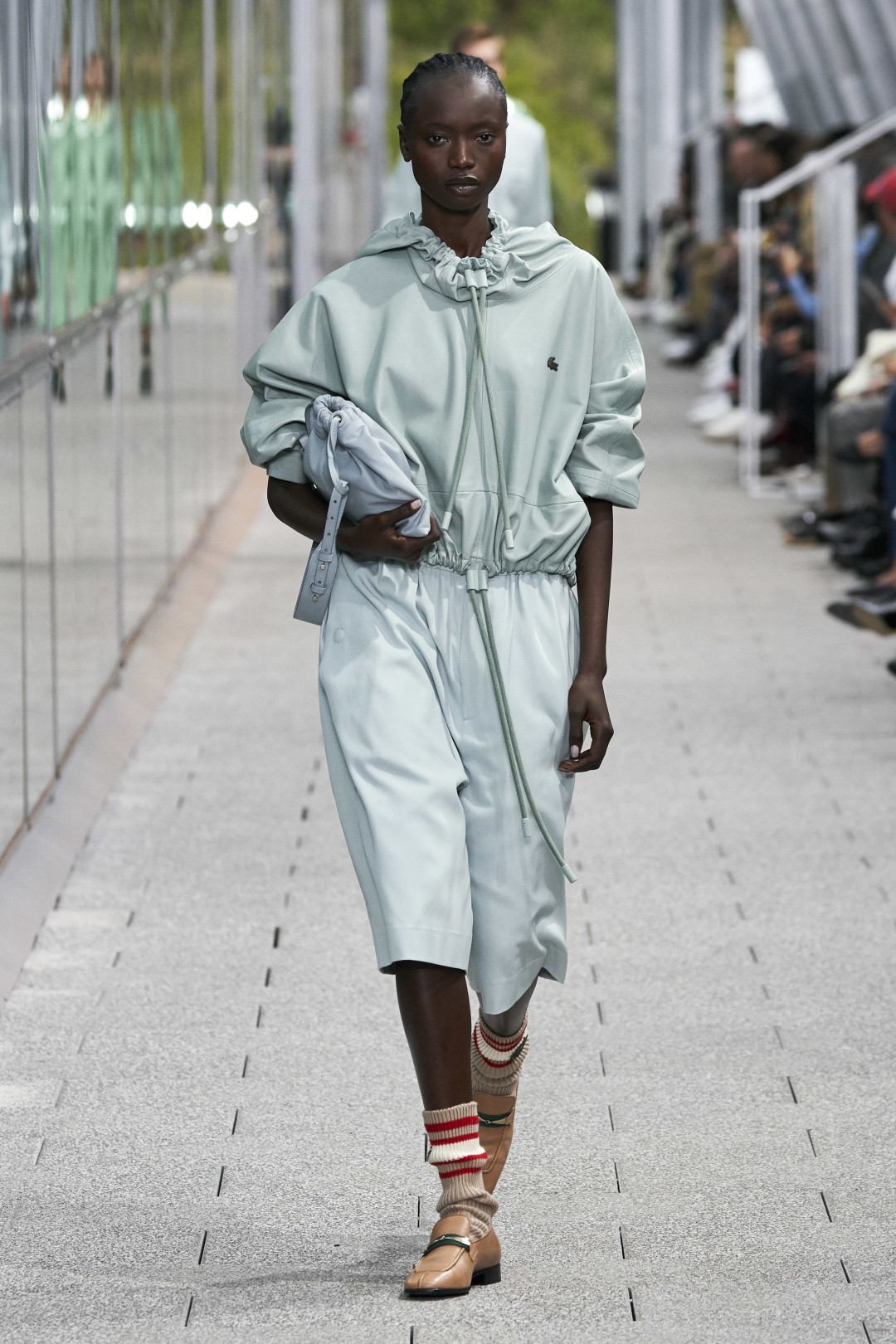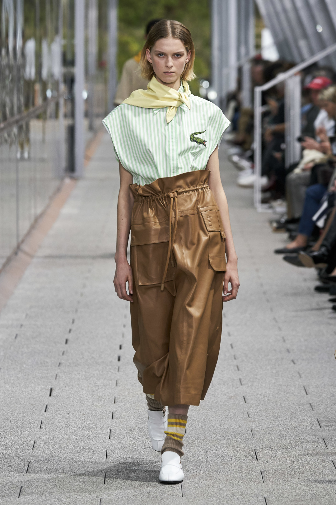Креативный директор Луиз Троттер, пришедшая на смену Фелипе Оливейре Баптисте, вспоминает не только эпоху «Четырех мушкетеров», но и другие важные для Lacoste события. Например, выход Джона Фицджеральда Кеннеди в фирменном поло во время летних каникул в лагере или поездку Рене Лакоста и теннисистки Сюзанн Ленглен загород. Именно от них в коллекции — вязаные жилеты с треугольным вырезом, белые юбки с заниженной талией и спортивные брюки на резинке, в которых можно и заниматься спортом, и гулять.