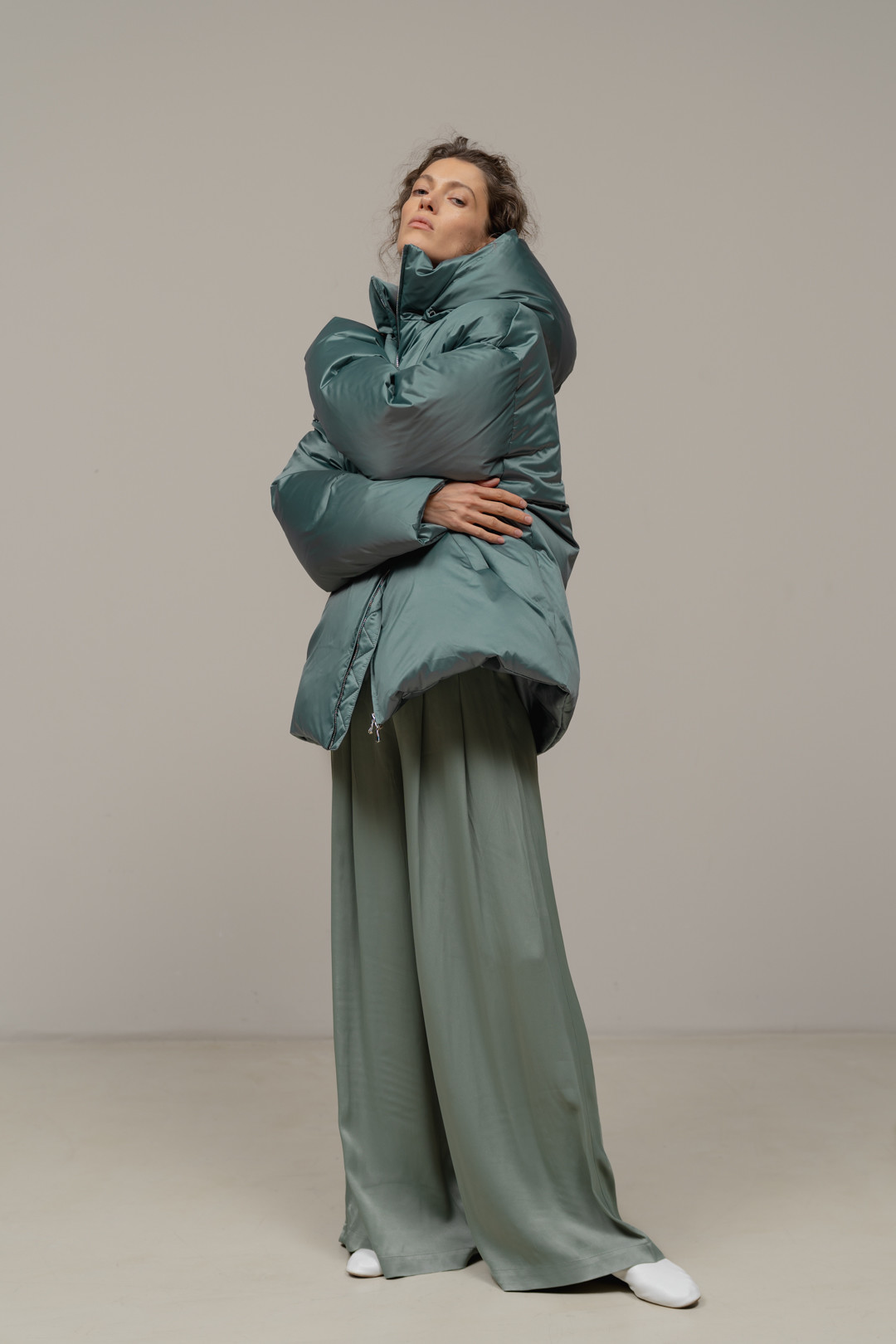 Марка Flugg, основанная петербурженкой Диной Малышевой, убеждает: пуховик — это не скучная повседневная одежда, а вполне себе элегантный предмет гардероба. Каждая новая модель создана под влиянием работ Эльзы Скиапарелли, Юбера Живанши, Кристиана Диора и Кристобаля Баленсиаги, в частности — классического жакета последнего с округлой спиной.