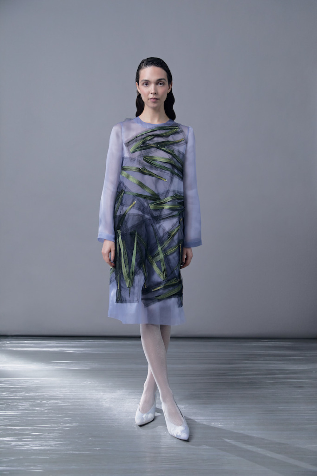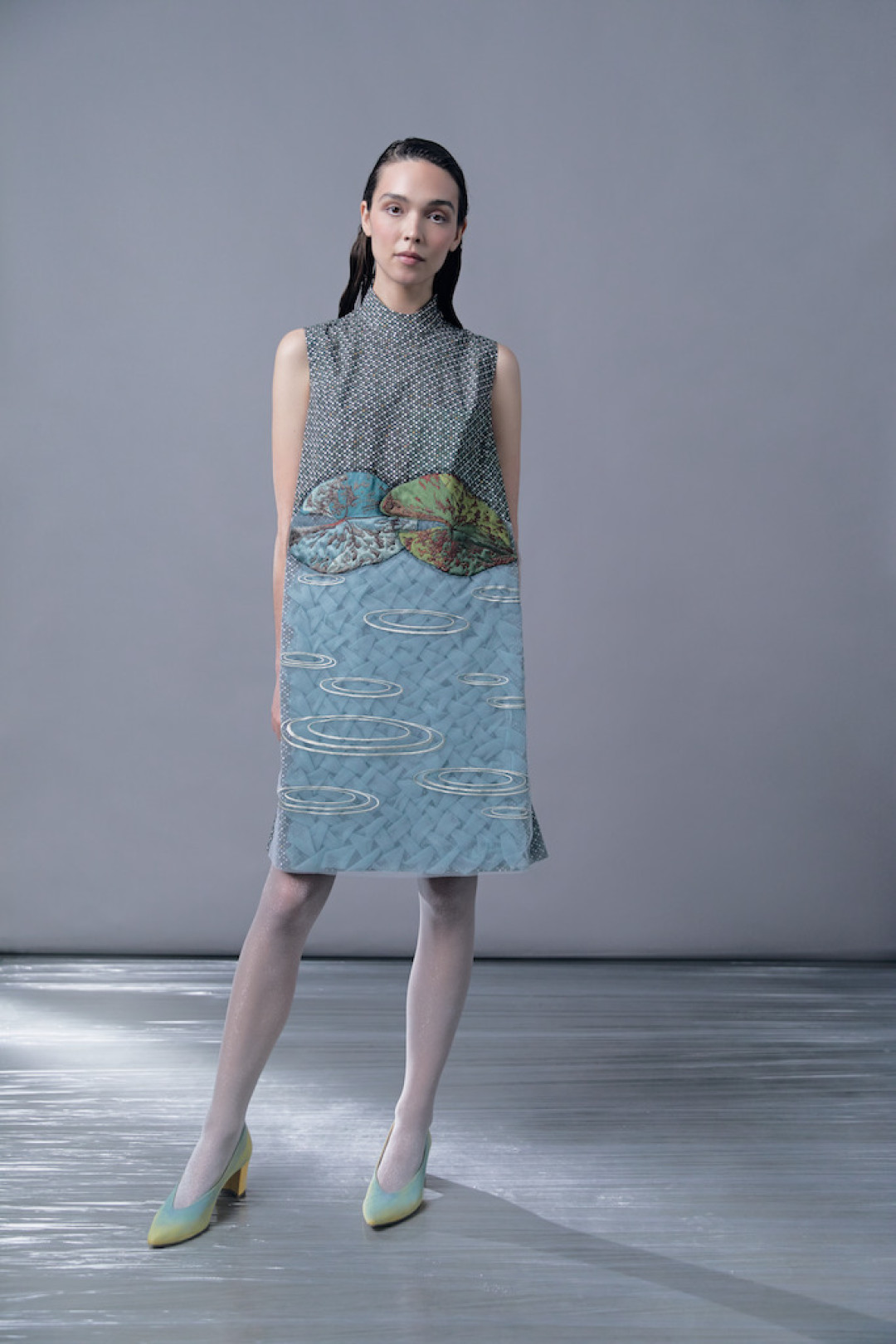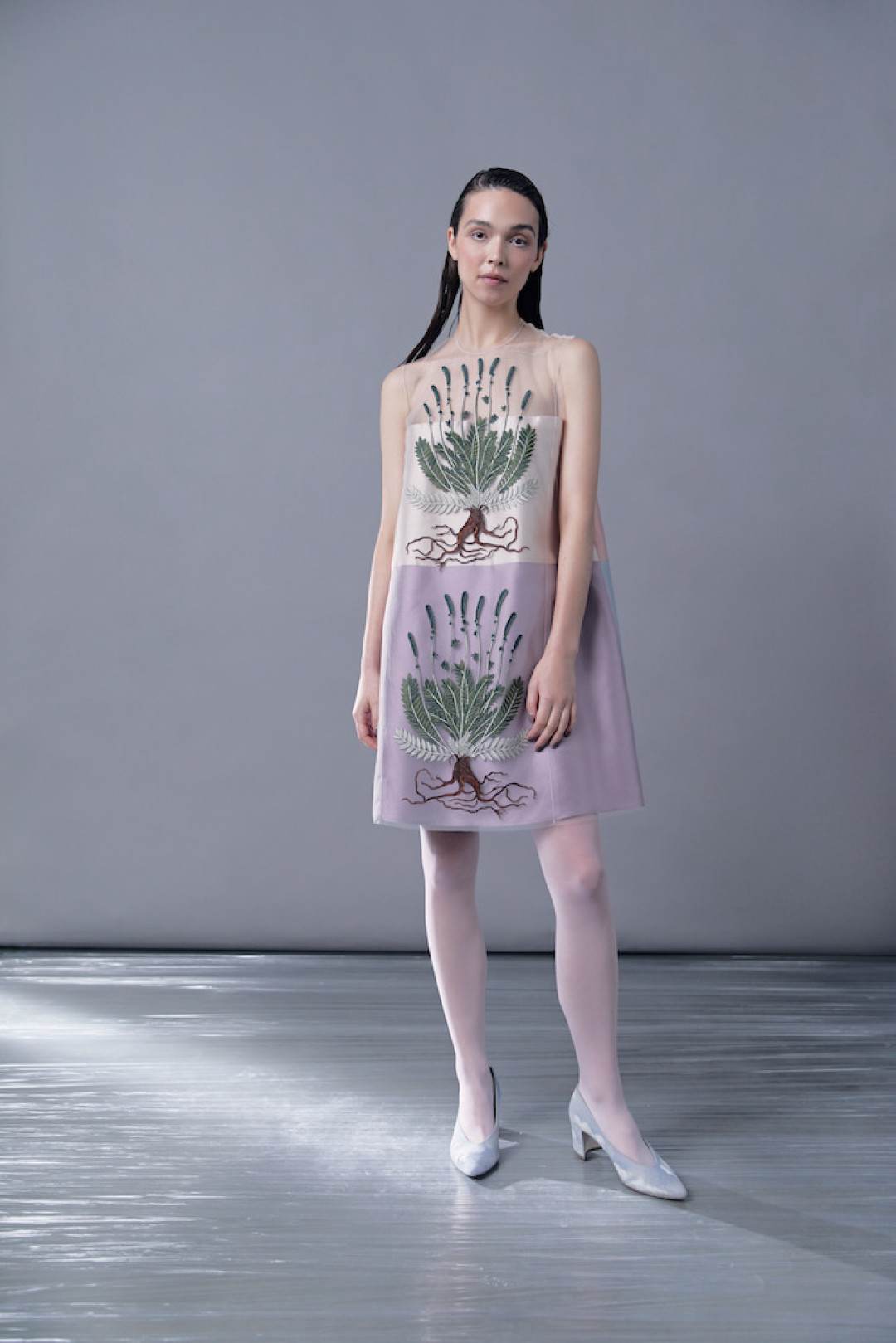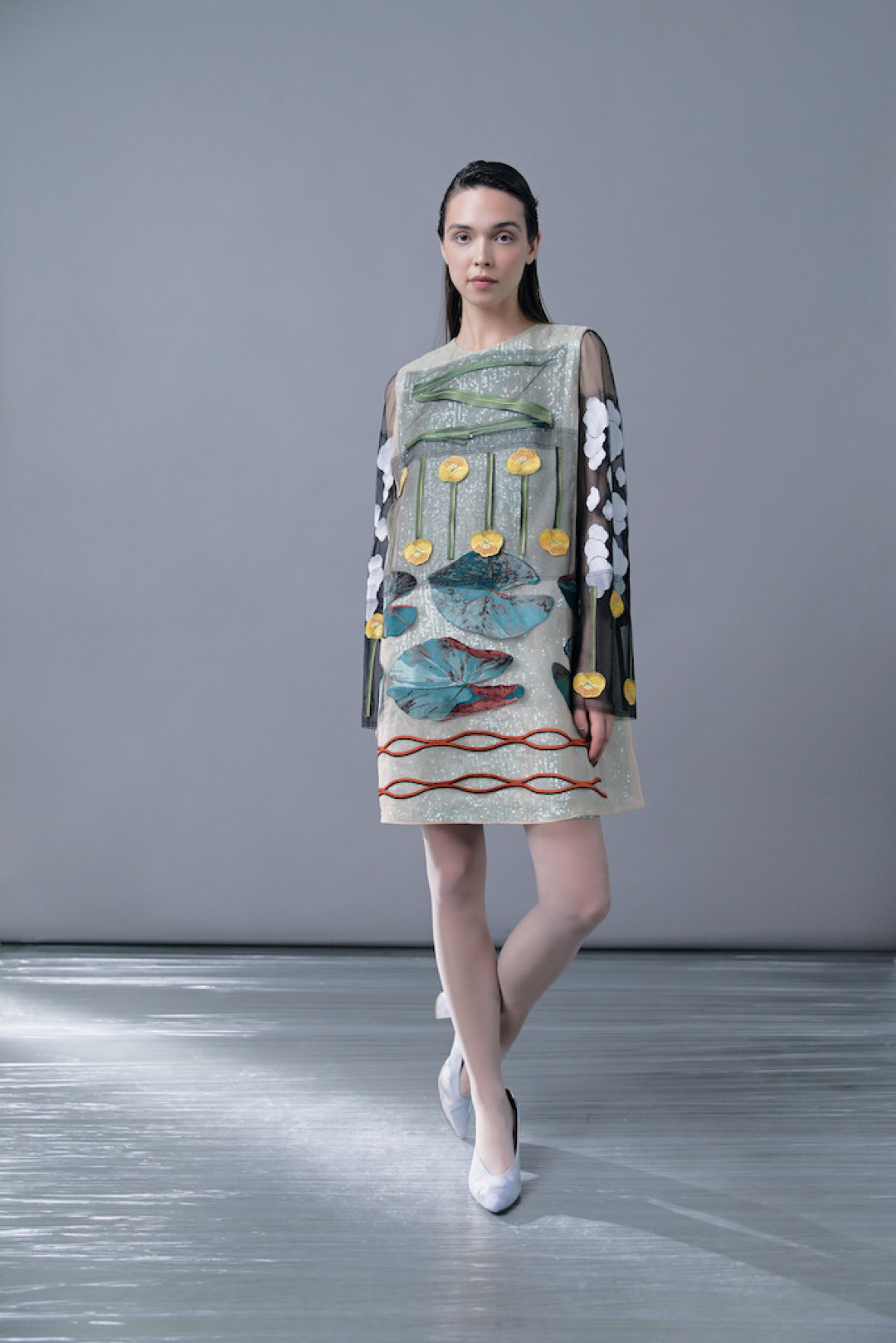 Каждое платье, как это обычно бывает в коллекциях Татьяны Валентиновны, похоже на отдельное живописное полотно — с «нарисованными» кувшинками, осокой, папоротниками, лебедями и теми самыми стрекозами с крыльями, прозрачными, как слюда. Все эти вышивки были созданы в стенах модного дома Tatyana Parfionova в Петербурге, что придает коллекции уникальное кутюрное качество. Однако сама Татьяна Валентиновна не считает важным деление на haute couture и ready-to-wear — «в наше время границы между этими понятиями стираются».