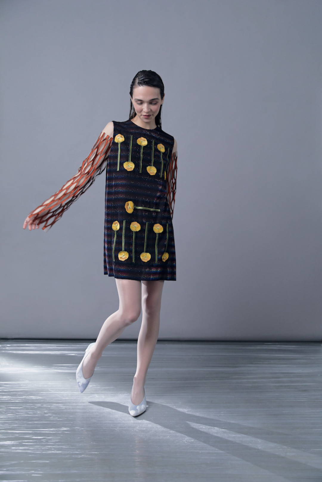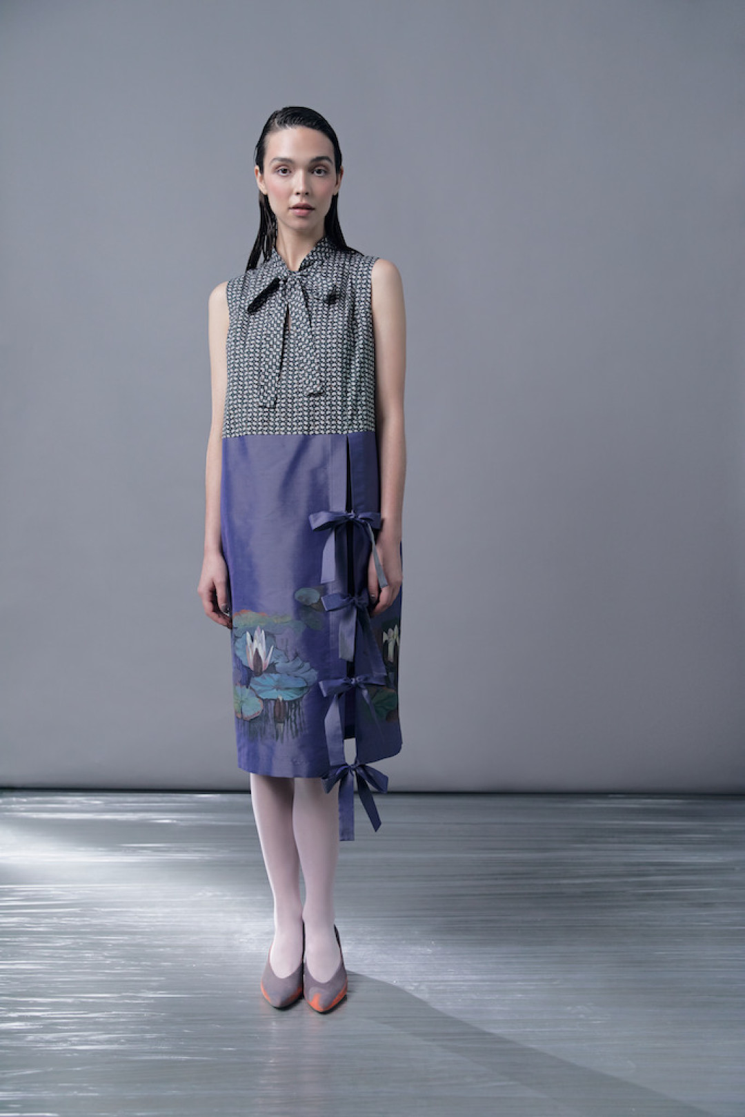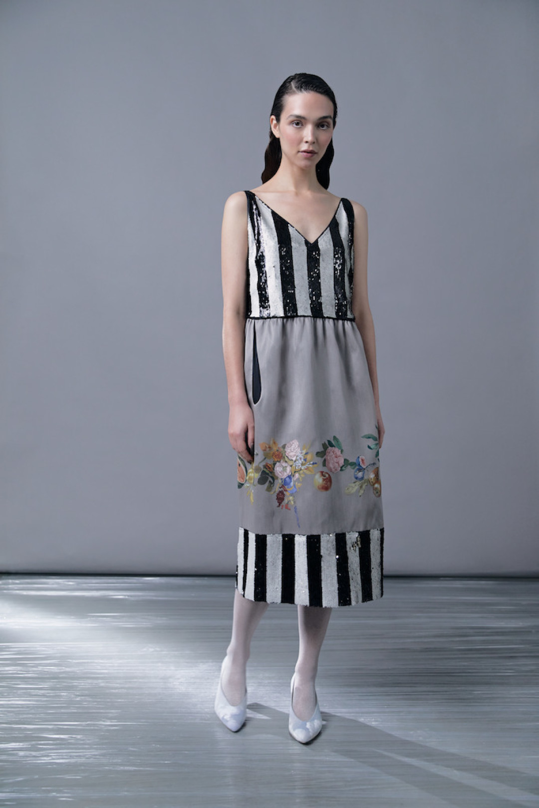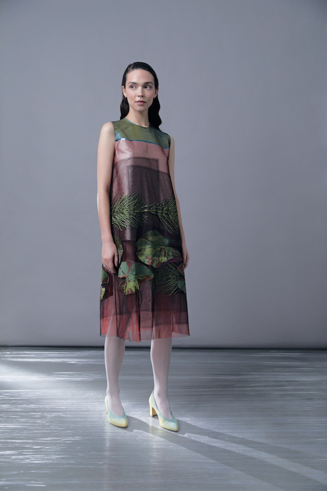 Каждое платье, как это обычно бывает в коллекциях Татьяны Валентиновны, похоже на отдельное живописное полотно — с «нарисованными» кувшинками, осокой, папоротниками, лебедями и теми самыми стрекозами с крыльями, прозрачными, как слюда. Все эти вышивки были созданы в стенах модного дома Tatyana Parfionova в Петербурге, что придает коллекции уникальное кутюрное качество. Однако сама Татьяна Валентиновна не считает важным деление на haute couture и ready-to-wear — «в наше время границы между этими понятиями стираются».