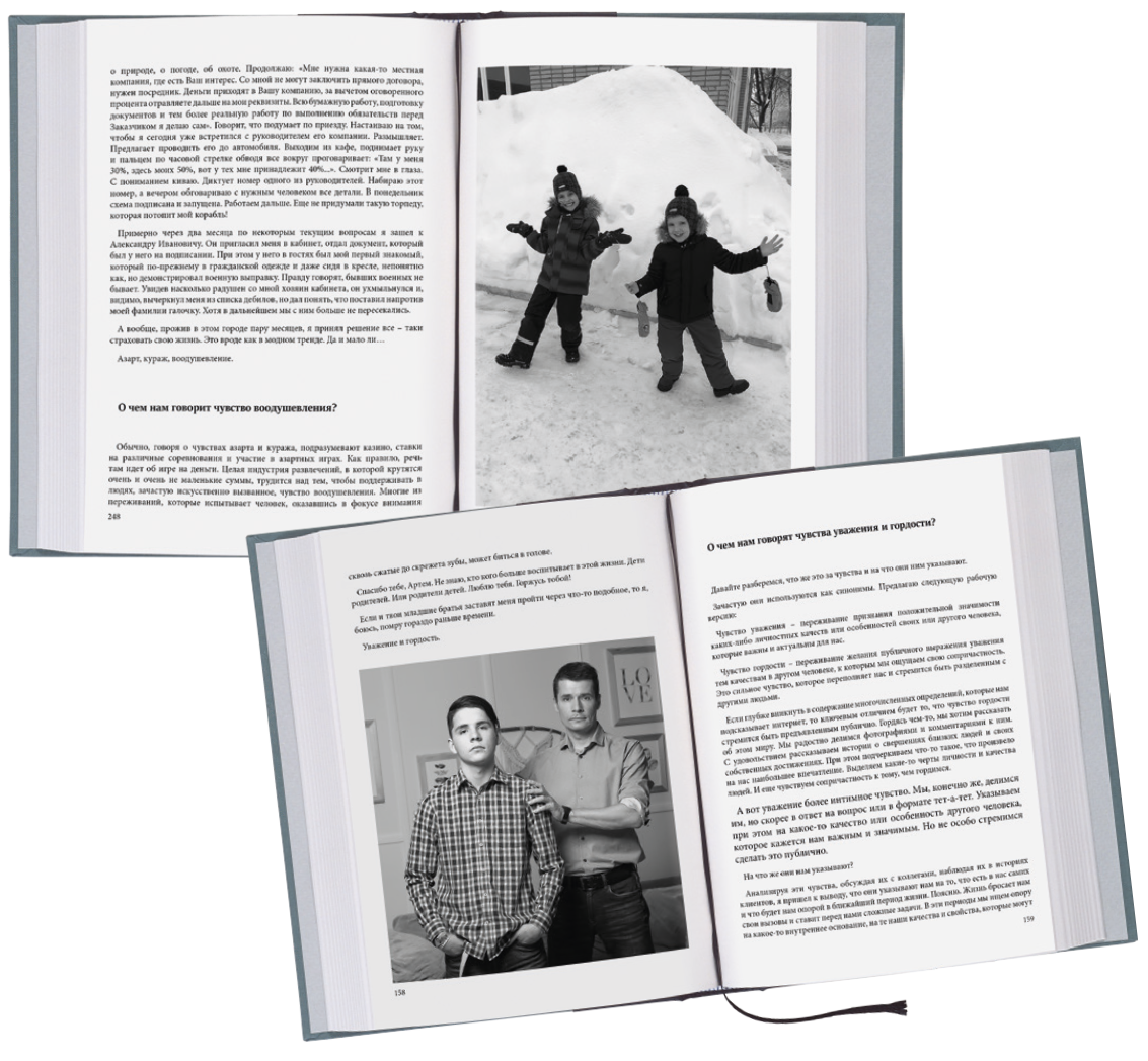 Да. То, что со мной происходило во время рождения книги, переживалось именно таким образом. Когда честно и открыто пишешь о чувствах ненависти, отчаяния, презрения, отвращения, страха и боли, наверное, иначе и быть не может.И что, вся книга в такой драматичной тональности? Отнюдь. Есть же чувства другого спектра: нежность, радость, любовь, благодарность, удовольствие, уважение. Некоторые главы появились в книге трепетно и мягкой поступью, с дружеским и теплым прикосновением, рождая переливы веселого детского смеха и ощущение домашнего уюта.Вы описываете очень разные ощущения. Так о чем же книга? О каждом из нас. Хоть книга и написана на примере моих личных историй, они будут знакомы абсолютно всем. Она о чувствах, которые знакомы любому, потому что они наполняют (а иногда и переполняют) каждый наш день. Еще она о том, в чем практическая значимость этих чувств.И в чем? Чувства подсказывают ответы.