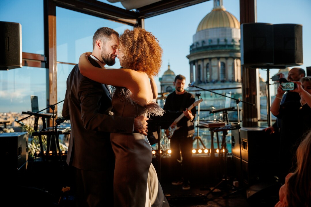Наша история любви началась в 2022 году на совместном обучении, мы попали в кадровый резерв в сфере науки и образования. В сентябре 2023 года Сергей сделал мне предложение. Так как свидетелей романа очень много — все одногруппники из кадровых резервов — то, конечно, часть из них (самые близкие) присутствовали на торжестве. Для многих гостей из других городов, в том числе и из Москвы, приехать в Петербург на выходные это отдельный праздник, да еще и повод такой приятный.