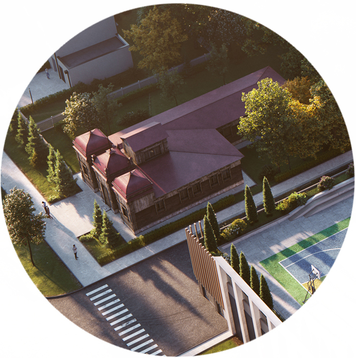 Из архитектурных достижений меньше привлекающих внимание - мы закрыли переходные балконы, ведущие к незадымляемым лестницам. Обычно они открытые и не ухоженные, люди там не ходят, поэтому застройщики экономят. Тем не менее, мы понимали, что это центр города, наше здание будут рассматривать со всех сторон, и закрыли эти переходы вертикальными элементами – ламелями. Они подчеркивают вертикаль здания, делают его более изящным по пропорциям, вытягивают вверх. Интересное решение у «короны» – коммуникации и технические помещения мы скрыты от глаз и дополнили подсветкой в вечернее время.Мы создавали не просто здание, а особую среду, которая формирует иное отношение к жизни в городе.Архитекторы с большим уважением отнеслись к соседству с историческим зданием. Во время строительства, чтобы убедиться в сохранности объекта культурного наследия, на нем установили датчики. А еще, чтобы визуально вывести особняк Юдиной на первый план, восточный фасад Башни решено было сделать фоновым в строгом сером минимализме. Кроме того, это поддержало заданную тему союза деревянных и бетонных фактур в дизайне проекта.Ближайшим соседом Башень является памятник архитектуры - особняк Прасковьи ЮдинойКомфортная среда для всехДом был построен в начале 1900-х годов. Одноэтажное здание рублено из брёвен, перевязанных в «лапу», и поставлено на невысокий цоколь, сложенный из «дикого» камня. Цоколь на уличном фасаде облицован белым камнем. Наиболее выразительно объёмно-пространственное решение передней части дома, акцентированной тремя высокими, массивными квадратными в сечении башнями, имеющими кубоватые покрытия. Весь комплекс, состоящий из дома, надворных построек и усадьбы, был самым дорогим в этой части города и оценивался в 1000 рублей.