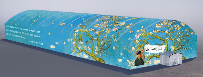 Технология, которая призвана «оживить» картины называется SENSORY4TM. Система, которая включает в себя сорок кинопроекторов высокого разрешения, расставленных по периметру павильона, многоканальную мультипликационную графику и систему объемного звука. Все вместе позволяет рассмотреть произведения в мельчайших деталях и в самых неожиданных ракурсах. Кураторы подобрали к мультимедийной выставке и музыкальное сопровождение. Любоваться электронными «Подсолнухами», «Ночным кафе», «Звездной ночью» и «Пшеничным поле с воронами» зрители смогут под японскую классику, Генделя и Кустурицу. Картины будут смонтированы с фотографиями художника и фактами из его биографии — 20 минутные видео зациклят на подобии «коуба». Всего перед глазами посетителей пройдут более 3000 полотен и фрагментов картин Ван Гога.