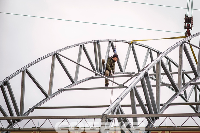 Сам павильон, напоминающий термос, представляя собой оцинкованную капсулу из металлоконструкций, выдерживающих любую непогоду. Две мембраны позволяют регулировать температуру воздуха в помещении: охлаждать в слишком жаркий день и, наоборот. На монтаж павильона потребуется 5 дней, далее начнутся внутренние работы — укладка полов, строительство перегородок и монтаж самой выставки: свето-звукового оборудования, проекторов и экранов высокой четкости. Проекционное оборудование, как и вся система, уникальна и разрабатывалась австралийцами (компания Grande Exhibition, которая не так давно привозила нашумевшую выставку «Мир акул» в Артиллерийский музей). Разработчики в полном составе приехали в Петербург и вместе с рабочими готовят экспозицию к открытию в круглосуточном режиме.