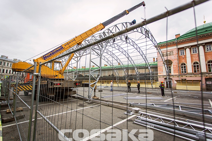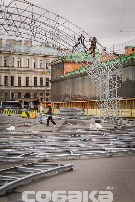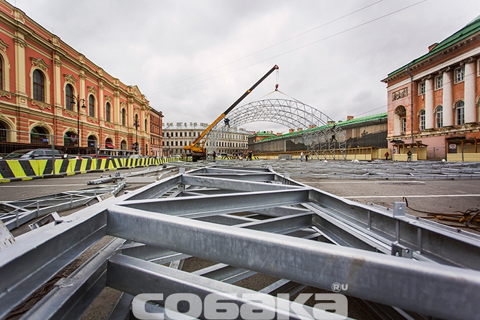 Передвижная экспозиция Van Gogh Alive («Ван Гог. Ожившие полотна») исколесила полсвета прежде чем приехать в Петербург. Специально для 3000 динамических картин на Конюшенной площади монтируют вместительный павильон. Мы посмотрели, как организаторы готовят одну из самых ожидаемых выставок лета.