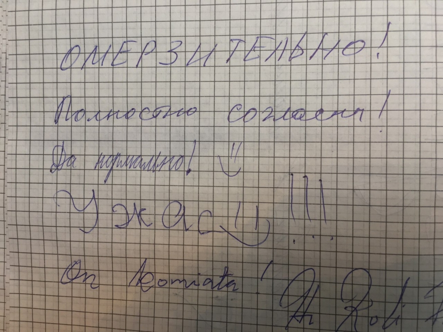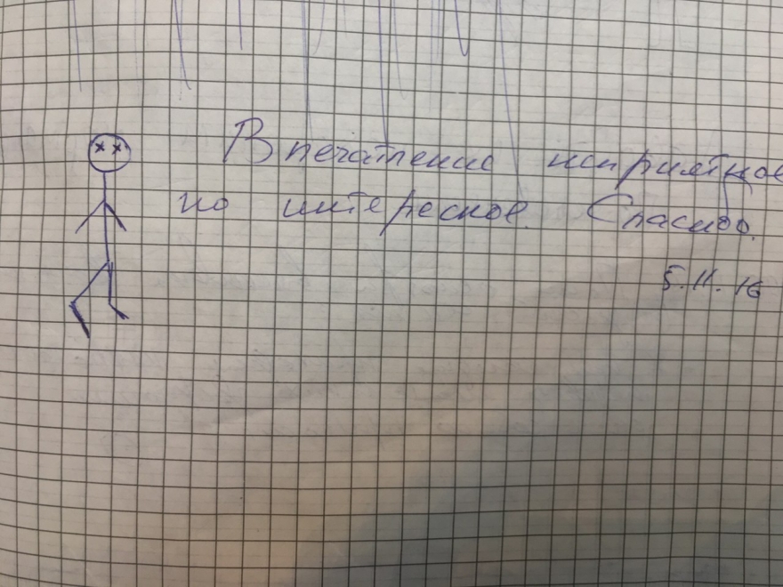 Выставка «Ян Фабр: Рыцарь отчаяния — воин красоты» с экспонатами в виде чучел животных разделила Петербург на два лагеря: гневные отзывы противников (среди которых Елена Ваенга и Виталий Милонов) скрепляет хэштег #позорэрмитажу, а защитники искусства в любых формах под предводительством Сергея Шнурова пишут #позорпозору. Мы сфотографировали лучшие мнения в аналоговой «Книге отзывов» в Главном штабе — в залах которого среди мишуры и блестящего дождика на крюках висят домашние коты и собаки.