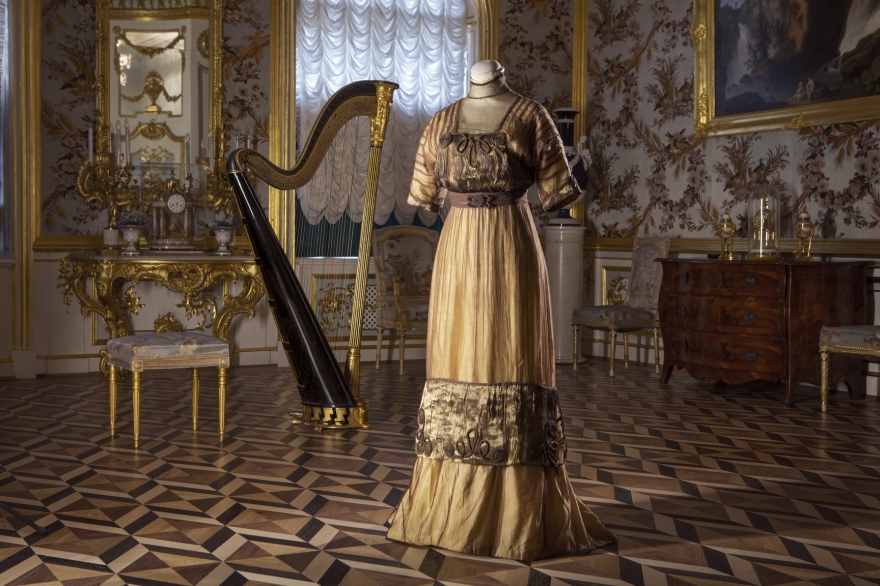 В ГМЗ «Петергоф» открылась выставка «Как одевался Великий немой», при оформлении которой я учел, что зрителю довольно сложно смотреть на костюмы, особенно если они лишены мемориальной составляющей, — на это способны только ценители. Основа экспозиции — коллекция платьев начала XX века Натальи Костригиной. В Петергофе когда-то прошел первый киносеанс в России: один из братьев Люмьер демонстрировал императору Николаю II свои ожившие фотографии. Я пофантазировал и создал сновидческое пространство, в котором пыль от кинопроекторов превращается в снегопад, а костюмы становятся участниками этого показа.