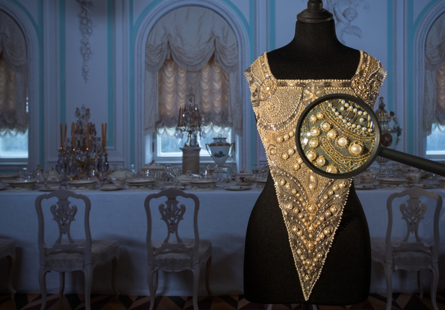 Художник-оформитель Юрий Сучков виртуозно рифмует неваляшек и классицизм, антикварные платья — со сновидческим кинопоказом. В Шереметевском дворце до 14 февраля проходит созданная им выставка «ОбличьЯ», а в ГМЗ «Петергоф» до 26 марта — «Как одевался великий немой».