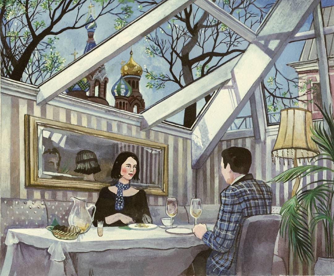 Если говорить о проектах «для себя», то серия из баров – моя любимая, мне нравится передавать атмосферу места, фиксировать ситуации. Ее я перенесла на открытки и стикеры. Также я рисовала открытки и иллюстрации для магазинов «Фонотека», «Подписные издания» и «Все Свободны», известных петербуржцев для бара «Полторы Комнаты» и портреты посетителей для кафе Артемия Лебедева. Сейчас я планирую сделать иллюстраторский проект, посвященный целиком одному району.