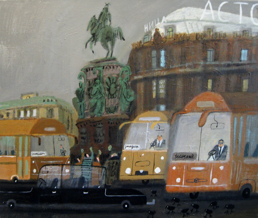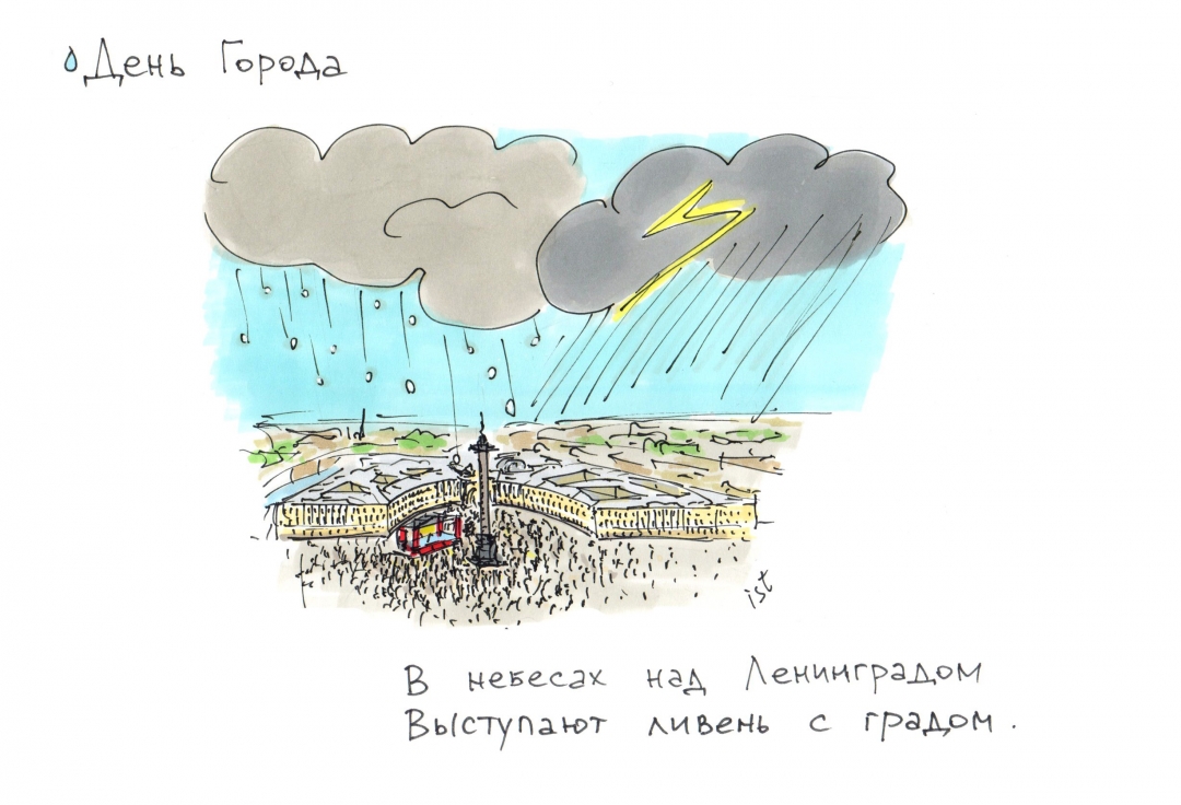 «Вы из Петербурга?» — на этот вопрос мне сложно ответить, потому что родился я в Ленинграде примерно за шесть лет до того, как он стал Петербургом, а страна начала жить по другим законам. Город детства представлялся чем-то прекрасным и безоблачным: мамин проектный институт, живущая с нами бабушка, дача под Кировском, запеканка на полдник. Все это ушло вместе с названием и детством, сейчас с Петербургом у меня теплые, дружеские отношения. Но это не всегда взаимно: на Московском вокзале или в Пулково город может встретить сурово — дождем, ветром или снегом. Мы с женой смеемся: ревнует нас дружище Питер к тем местам, откуда приехали или прилетели! Чувства мои к Петербургу глубоки, хотя тут я не однолюб: есть в мире пара городов, которые считаю «своими». Но я уверен, что рисовать можно только то, что хорошо изучил, понял, прочувствовал — тогда получится правдиво. Поэтому так много Петербурга в моих работах.