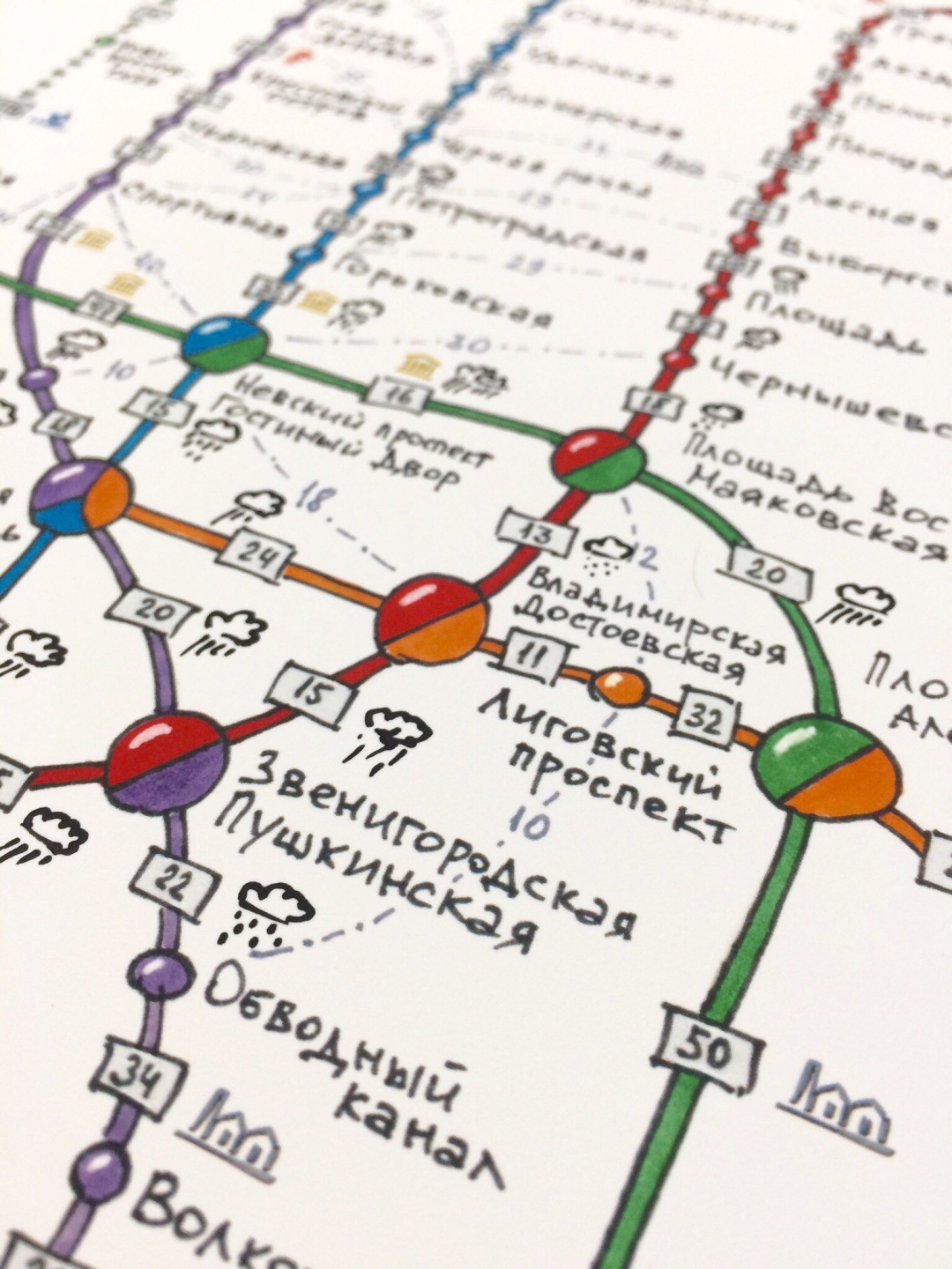 Одним из моих проектов является настольная игра «С утра до вечера по-петербургски», которую мы сделали вместе с Музеем советских игровых автоматов, и работы для Петербургского метрополитена. Не люблю говорить о планах, но в том проекте, который сейчас созревает в голове, есть и Петербург, и Ленинград — оба любимых города.