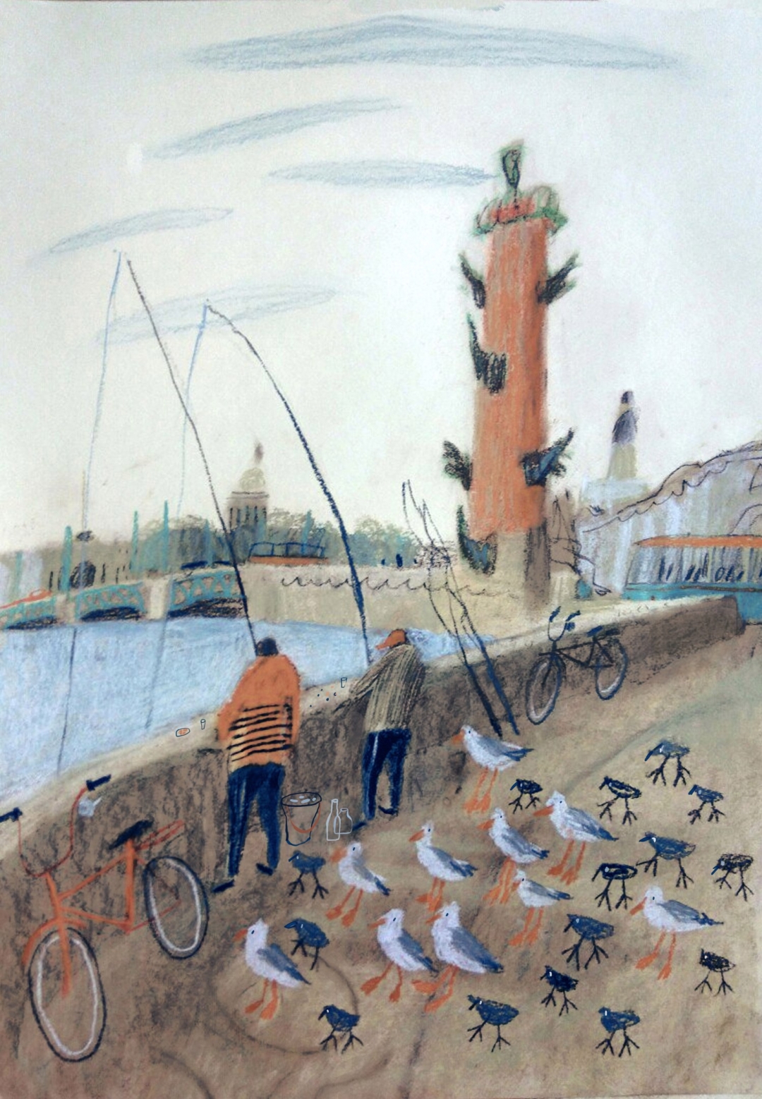 Мне было шумно и пыльно от того, что продавалось на петербургском сувенирном рынке. Все эти кислотно-синие неживые небеса – где они такое увидели в Петербурге? Поэтому я решила сделать своему городу что-то по возможности вкрадчивое, создала рисунки и просто отнесла их в «Подписные издания».