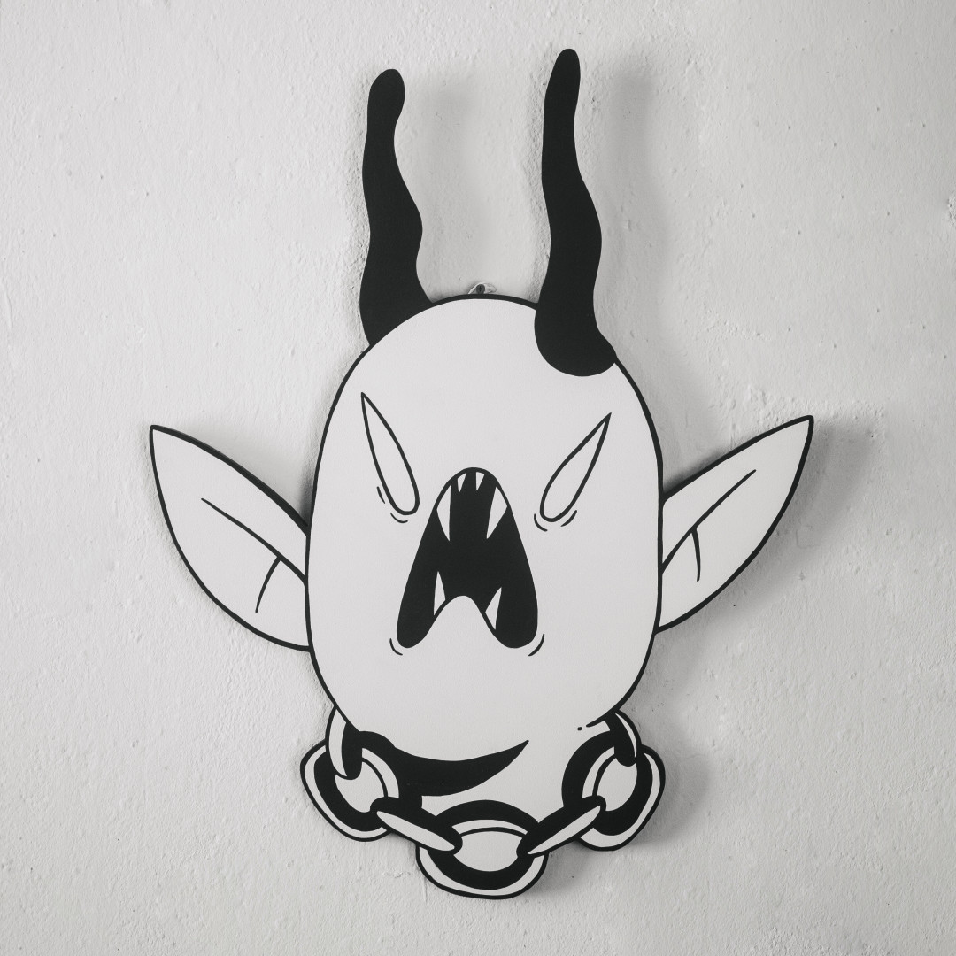 Петербургские гастроли лучшей галереи Нижнего Новгорода FUTURO. Максим Трулов и Ксюша Ласточка – дуэт уличных художников, идеологи и авторы группировки “Your mum`s knights”. Стиль ребят базируется на использовании черно-белой гаммы и графичности образов персонажей из их собственной вселенной. Наши симпатии на стороне PABLO в цепи-чокере — адекватная замена бабушкиной «чеканке» из 70-х на кухне.