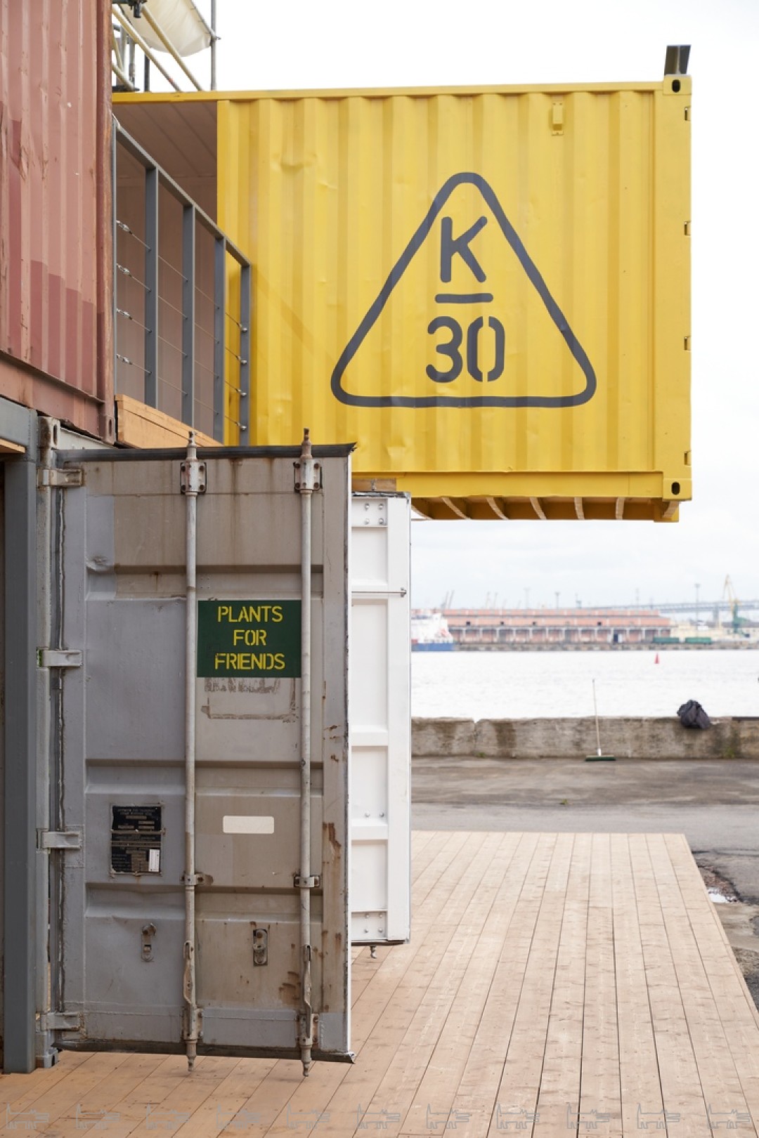 Пространство К-30 создано за один месяц на пустой прибрежной территории в гавани Васильевского острова. За архитектуру отвечало бюро Rhizome (авторы бистро «Футура», отелей «Точка на карте»), кстати, они же в прошлом году делали сцену Garden на PPF. Контейнеры, как основной элемент пространства, выбраны не случайно – это универсально и мобильно, плюс в этом есть символизм, так как рядом находится морской порт.