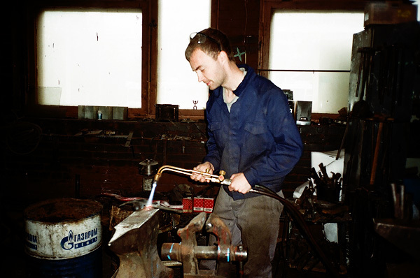 Металл – это всегда грязь. Чистым в кузнице ты никогда не будешь. Нужно подыскать подходящее помещение, чтобы разводить огонь, приобрести все оборудование. Одним словом, в гараже ее не сделать. Место для своей мастерской мы искали пару недель. Нашли троллейбусный парк, где была исторически сложившаяся кузница: остались наковальня и молот. Место подходило нам идеально, там было все необходимое, включая пневматический молот: он очень тяжелый, его сложно установить и от него много шума.