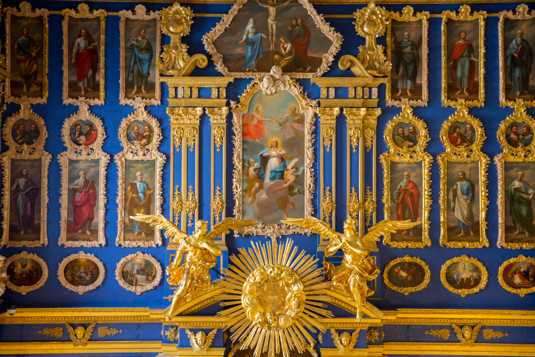 Эта церковь создана в середине XVIII века, чудом она не сильно пострадала во время Великой Отечественной войны. Это архитектор Растрелли, построено по повелению Елизаветы Петровны. Все помнят церковь снаружи — купола изображают на туристических буклетах. Но что внутри, мало кому известно. Во время войны там был гараж. Церковь сохранила архитектуру Растрелли до наших дней — это ценно, потому что подлинного от созданного им осталось не так уж много. В Эрмитаже тоже Растрелли, но он более скромный. Здесь же — апофеоз цвета, золота, настоящий гимн. Мы все время мечтали ее восстановить, но понимали, что стоит это сумасшедших денег — около одного миллиарда рублей. К счастью, появился благотворитель, который выделил нам эти средства — компания «Газпром».