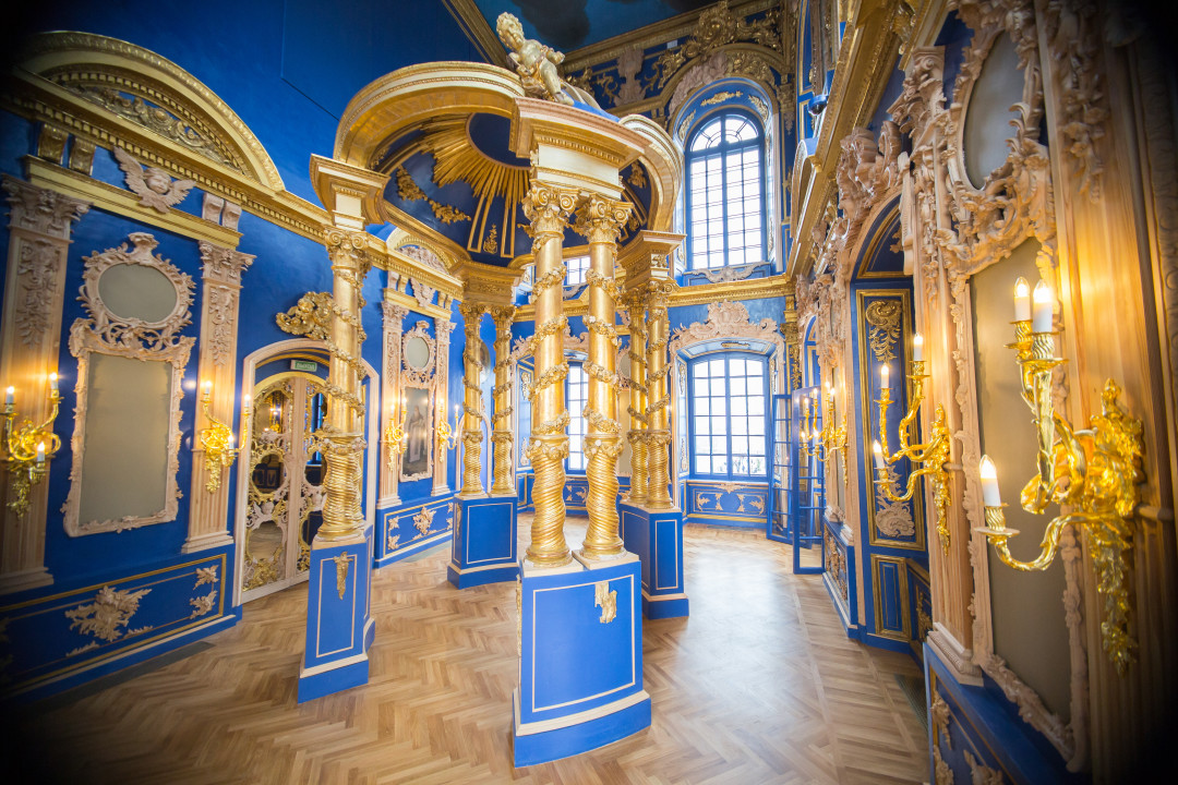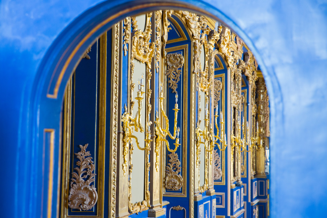 Весь дворец — при своей кажущейся масштабности — довольно узок внутри. Через все здание проходят параллельные друг другу анфилады. Каждая из них имеет уникальную отделку, большая часть была создана при Растрелли — это насыщенное, тяжелое, золотое барокко. В одной анфиладе находятся Янтарная комната, Большой и Картинный залы — это наше лицо, то, что в первую очередь хотят увидеть туристы. Вторая более спокойная, там меньше отделки, мы ее тоже показываем, но это другой маршрут.