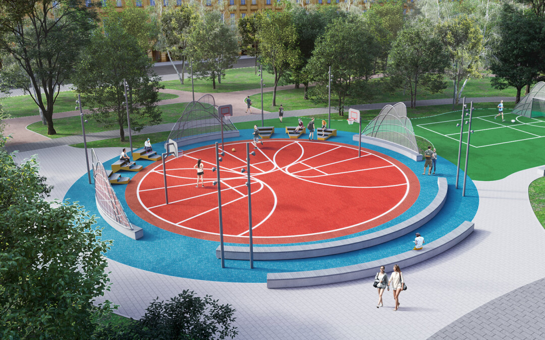 Идея современного ландшафта предполагает инклюзивность в широком смысле слова. Парк, конечно, приспособлен для маломобильных групп населения, по дорожкам удобно ездить в коляске. Но, кроме того, в нем есть зоны, рассчитанные на людей самых разных возрастов и интересов. Есть и спортивная площадка для молодежи, и тихие уголки для спокойный посиделок. В створе Гранитной улицы построены небольшая уличная сцена, где можно проводить концерты, и площадка для выставок. Батуты на детской площадке выглядят как лунные кратеры – перепрыгивая с одного на другой, можно ощутить что-то, напоминающее невесомость.