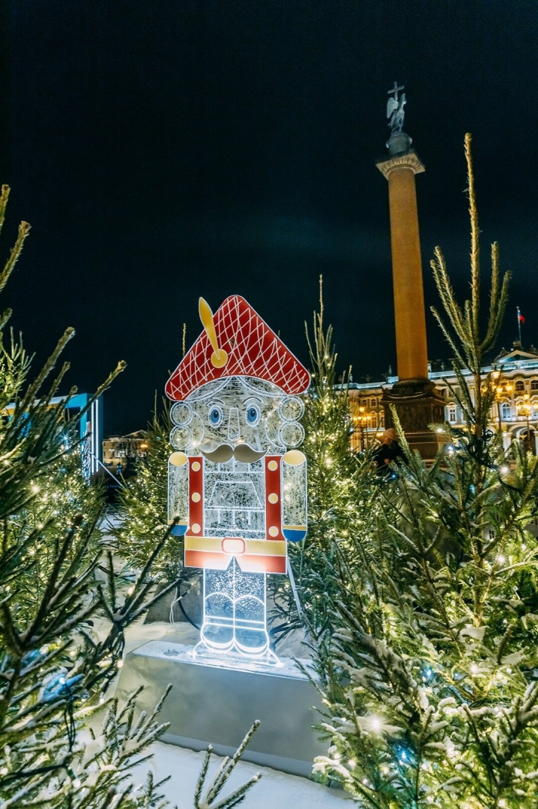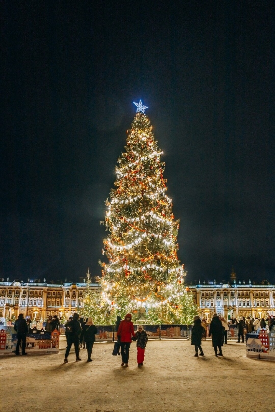 Второй год подряд Дворцовую площадь украшает живая ель, такой выбор сделали жители Петербурга. 90-летнее дерево нашли в Приозерском районе Ленобласти около деревни Котово. Выбрали его за идеально ровный ствол (говорят, это редкость для таких больших елей) и пушистые ветки.