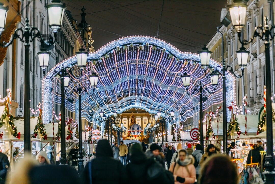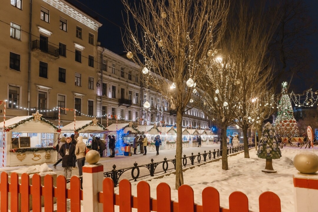 Пожалуй, самой яркой улицей города после Невского проспекта стала Малая Садовая улица, где разместилась Новогодняя и Рождественская ярмарка.