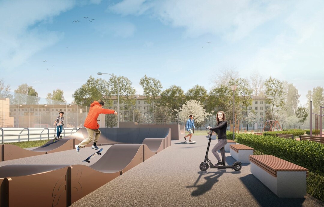 В 2020 году здесь открыли зоны тихого отдыха, спортивную и детскую площадки. А августе этого года пространство дополнили площадкой со скейт-рампой и памптреком, зоной для игры в теннис. Детскую зону дополнили качелями, каруселями, песочницей, меловой доской для рисования. Открыли прогулочный маршрут с городскими качелями и лестницами для подъема на верхний уровень территории для подхода к Дому культуры в Сяськелеве. За проект отвечал Центр компетенций Ленобласти.
