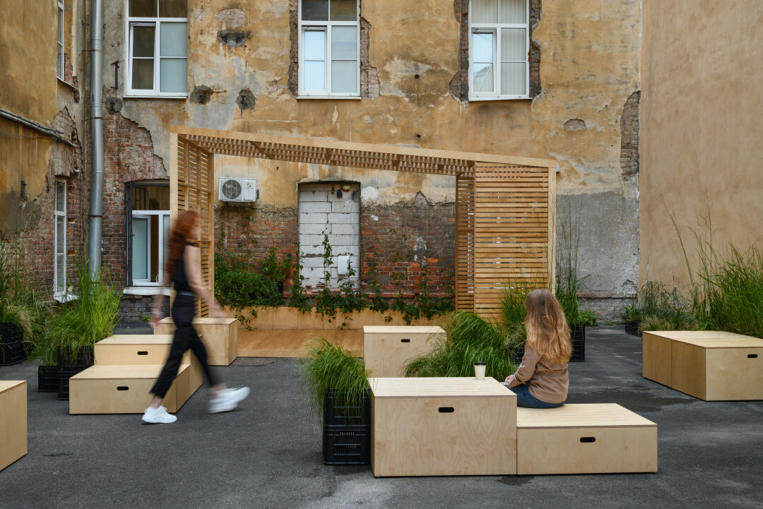 Общественное пространство во дворе Европейского университета