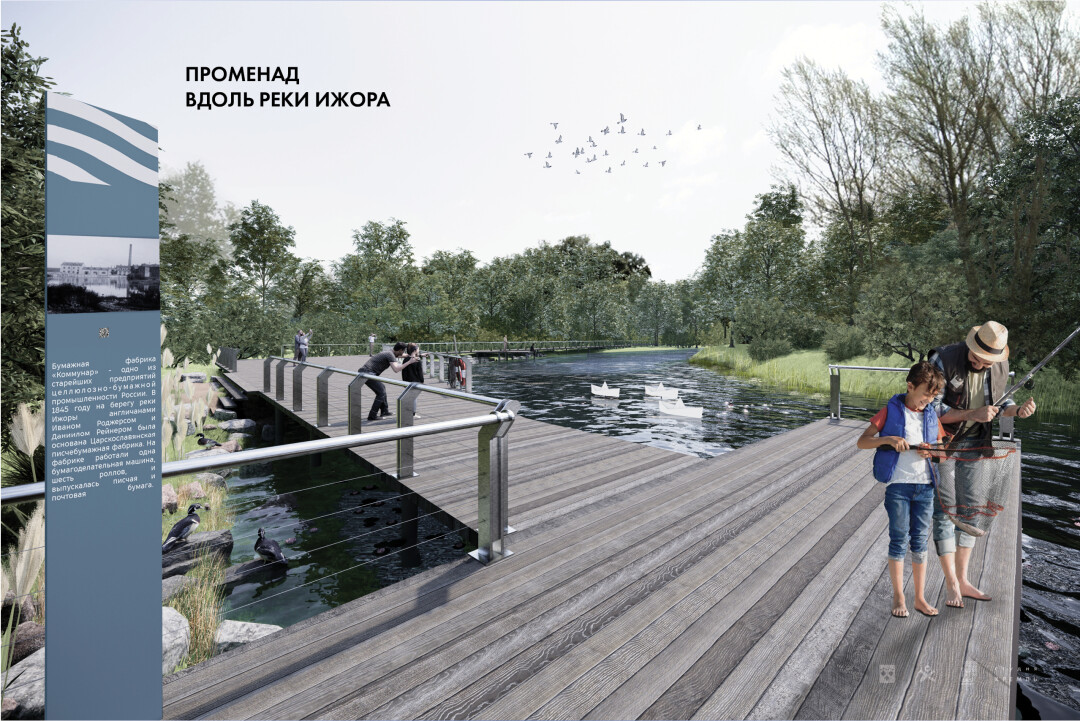 В Коммунаре на Ижорской, 20 откроют общественное пространство возле реки Ижоры. Здесь обустроят детские и спортивные площадки, прогулочный маршрут, пространства для отдыха и кормления уток, точки общепита и проката спортинвентаря. Вдоль парка пройдет велодорожка Москва-Петербург (Вело 1). Здесь уже работает городская лаборатория, где молодежь обсуждает экологические проблемы и благоустройство среды.