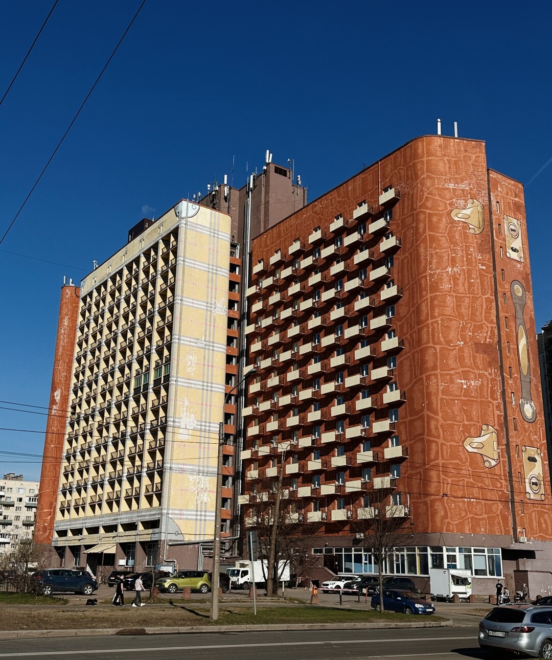 Один из первых полноценных примеров современной архитектуры в Ленинграде. Здесь проявились все приметы модернизма: отсутствие декора на фасаде, простота объемов и строгость линий, функциональное решение внутренних пространств. В 1961-1967 годах построили корпус на 1300 мест на набережной Фонтанки, у Египетского моста. Авторы проекта — архитекторы Левинсон, Ганкевич, Прибульский. Это было первое в Ленинграде 19-этажное здание. Академик Лихачев считал, что «Советская» существенно нарушает образ города. (Впрочем, многие горожане до сих пор спорят: удалось ли ей вписаться в район с историческими малоэтажными постройками или нет).