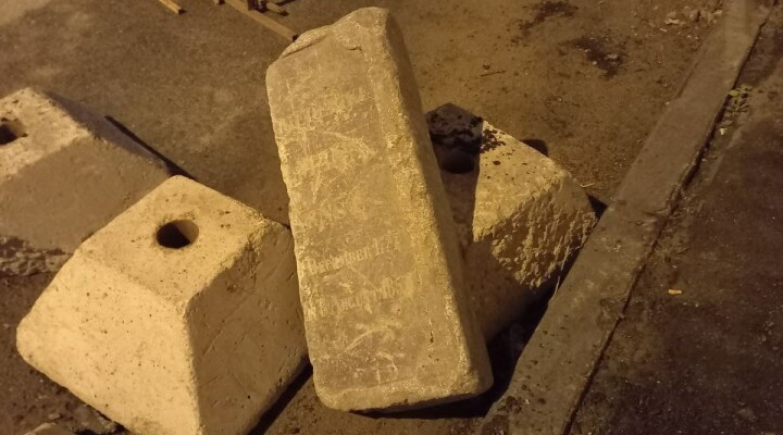 Половина могильного камня была поребриком. Подобная практика существовала в Ленинграде в первой половине XX века. Тогда надгробия использовали для утилитарных нужд.